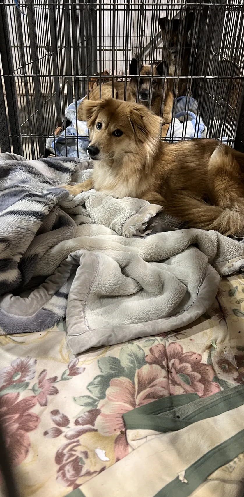 隣のケージの毛布まで