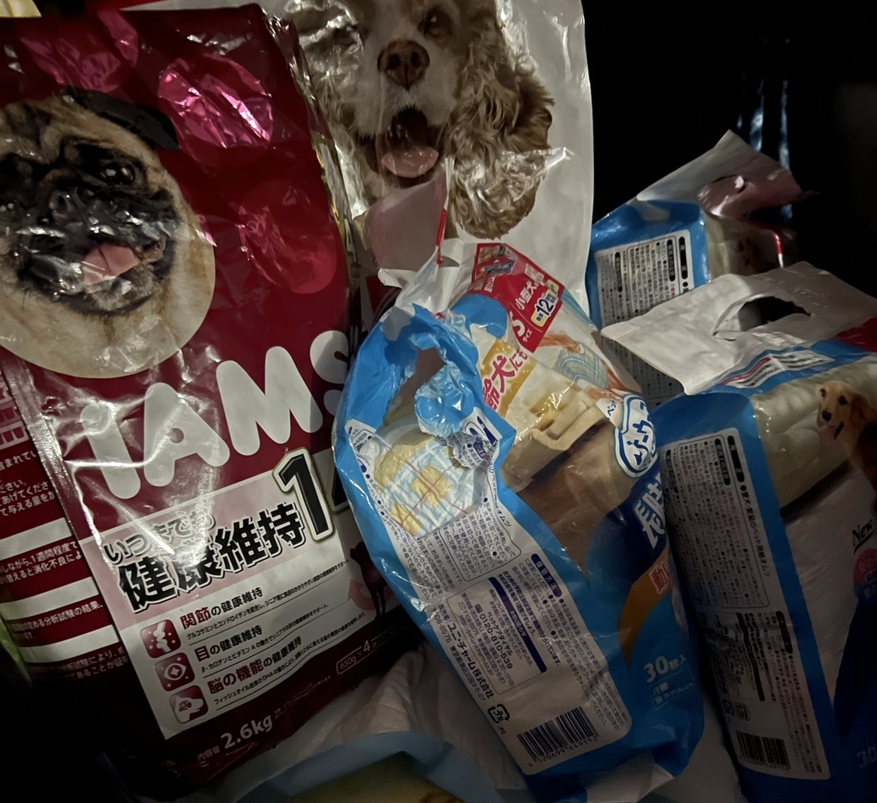 子犬用は缶もドライフードもペットシート大量に必要です。