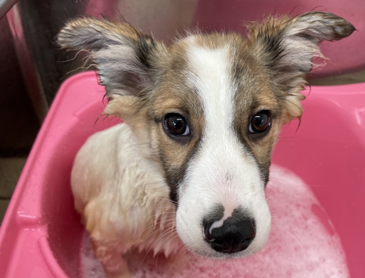 出発を前に、ドッグサロンMINIさんにシャンプーや肉球の毛の処理など