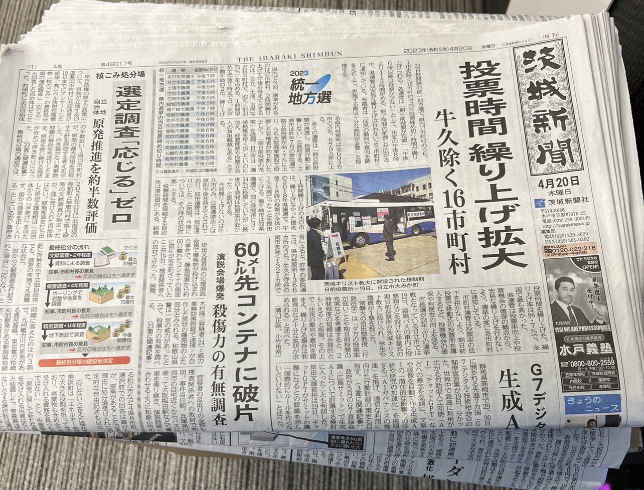 H様から新聞紙ご支援いただきました。