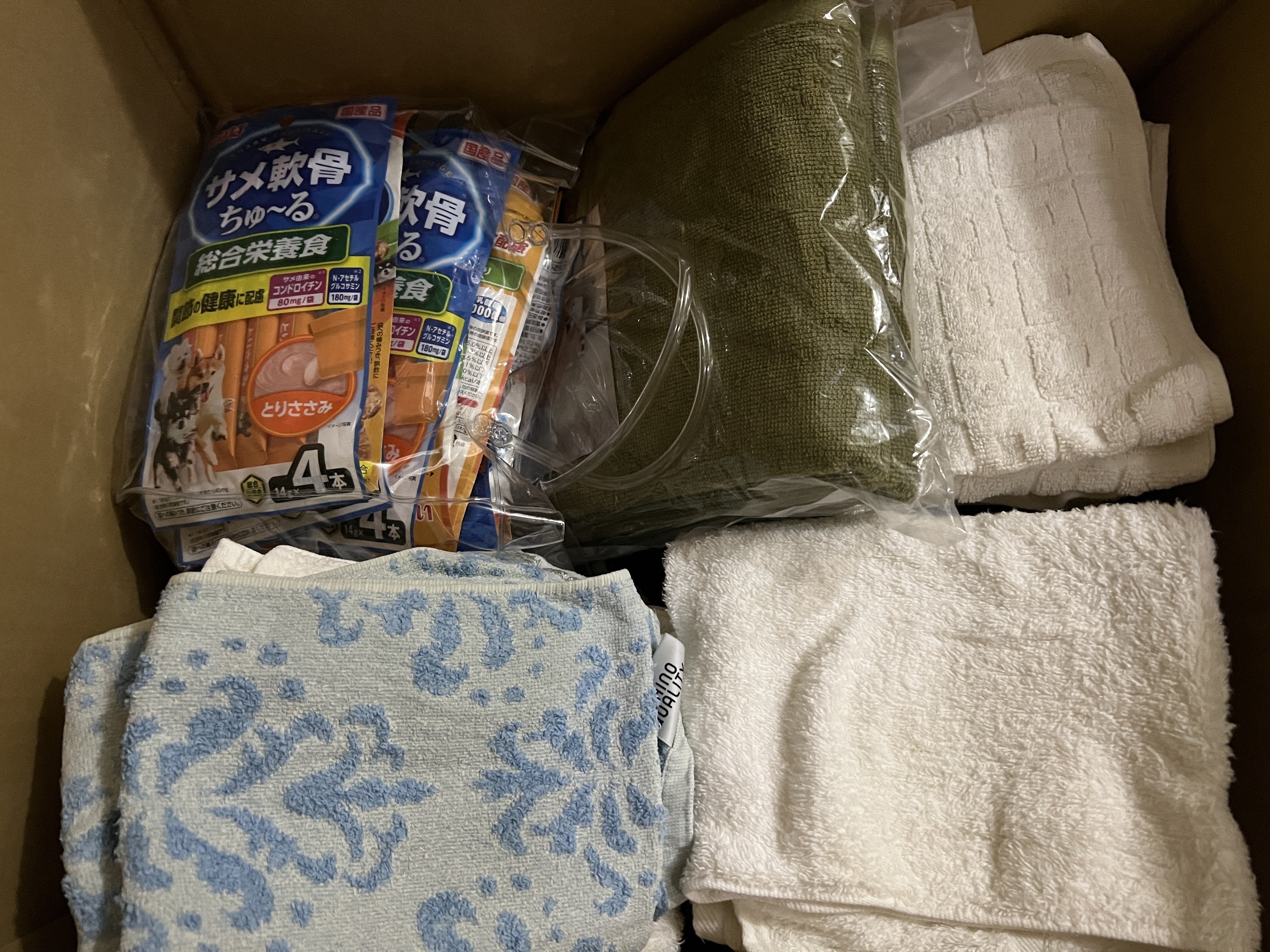 I様とお仲間様からタオルやブランケット、おやつご支援いだだきました。