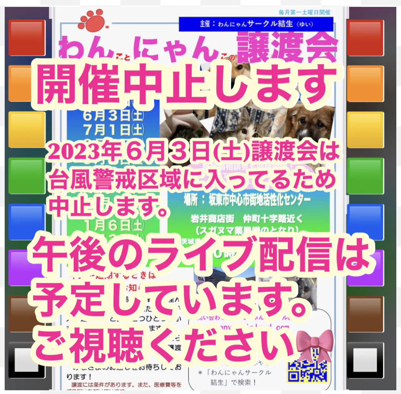☆本日の譲渡会は中止で、オンライン譲渡会だけ行うことにしました☆