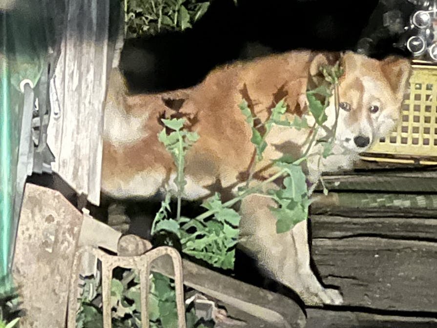 昨夜行ってみたら、小屋から伸びをして出てきました。
