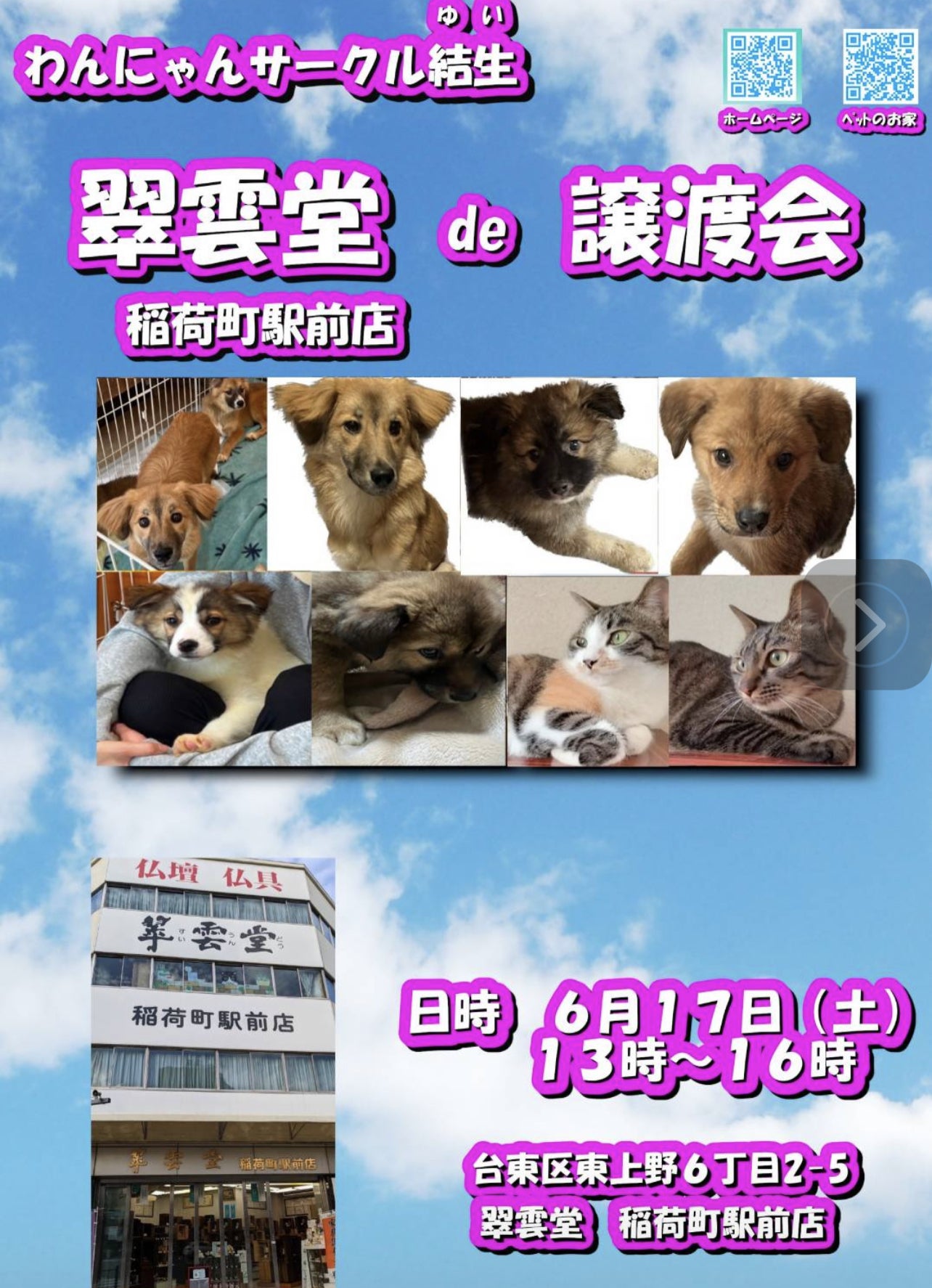 翠雲堂稲荷町駅前店さんでの譲渡会は今回が最後になります。