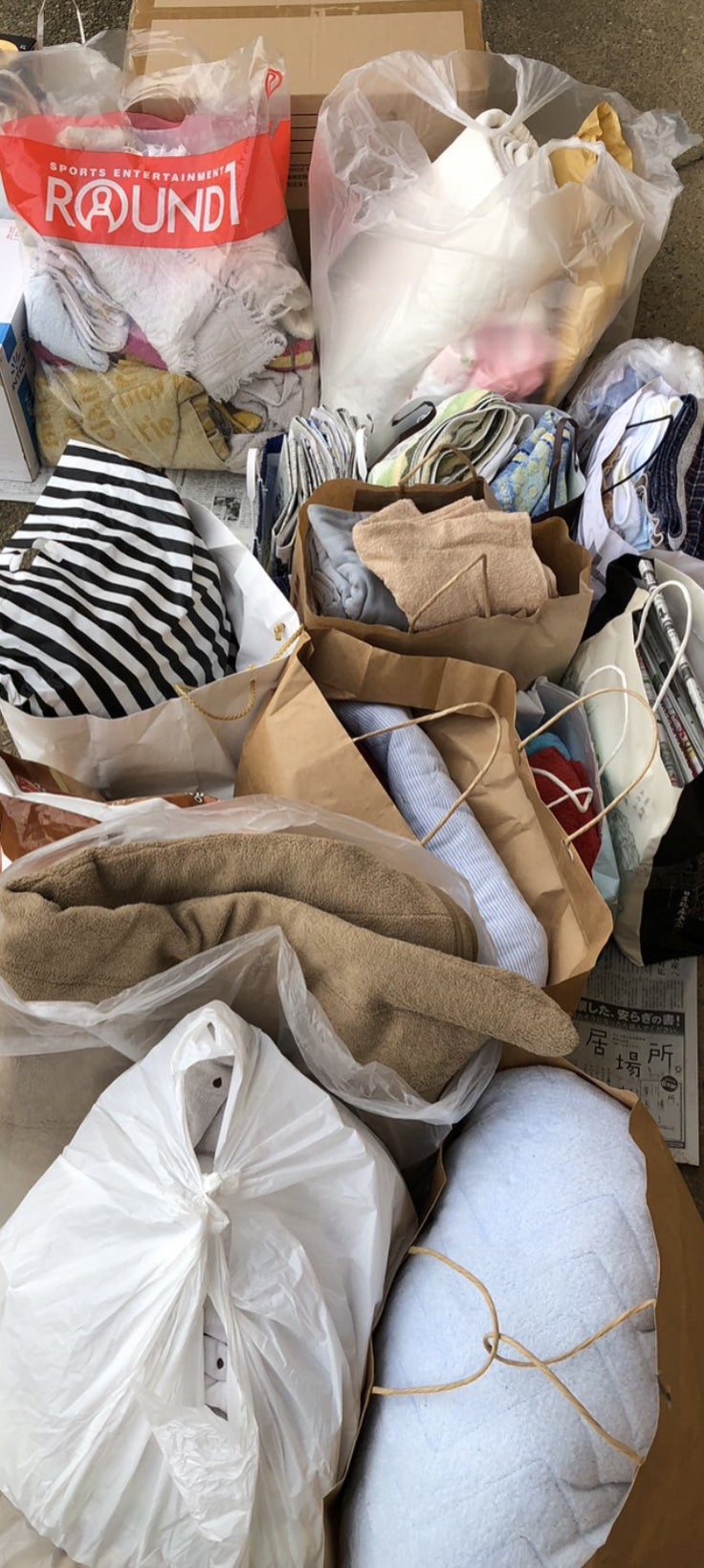 毛布に新聞紙、わんちゃんフードなど。