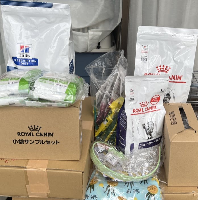 現在は特にウェットフードやチュール(総合栄養食)とペットシートが大量に必要です。