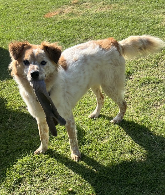 おやつ、尻尾振ってパクリ♪のこもいれば