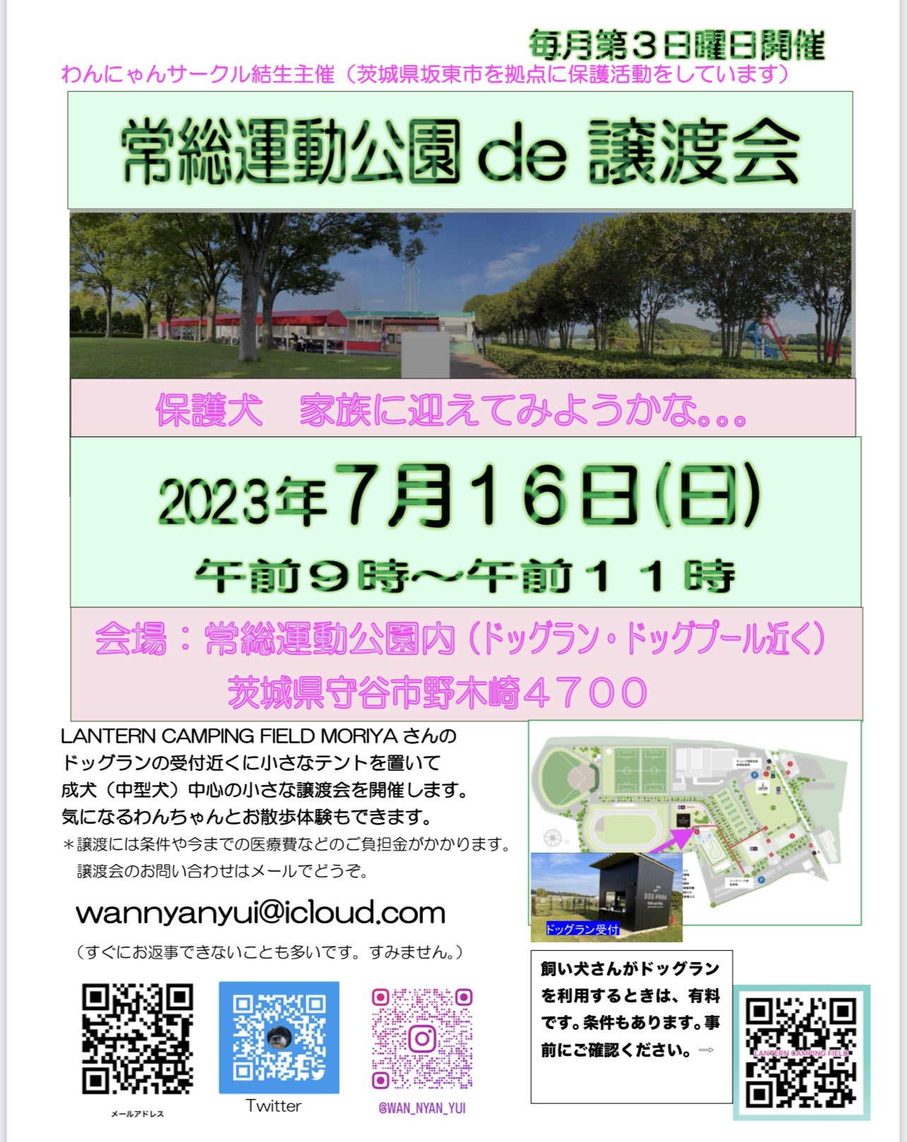 明日は午前中、茨城県守谷市の常総運動公園で譲渡会を開催します。