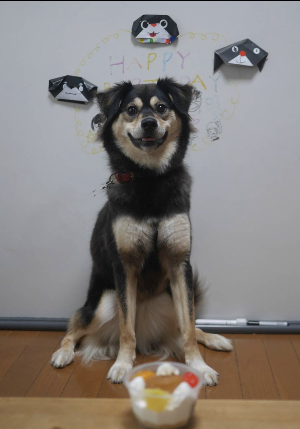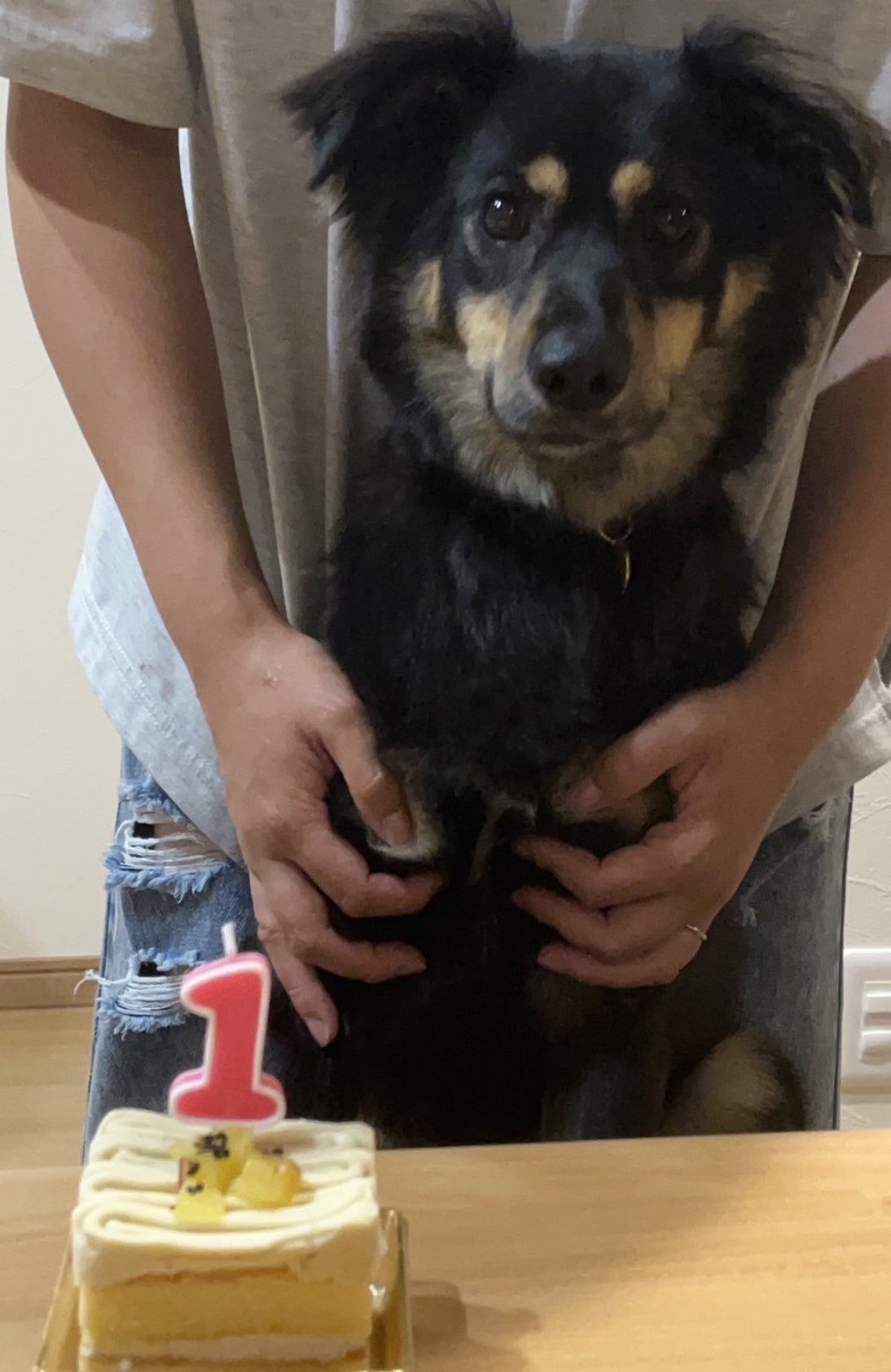 ↑くにくん(保護時のお名前)もお誕生日ケーキを前にポーズ♪