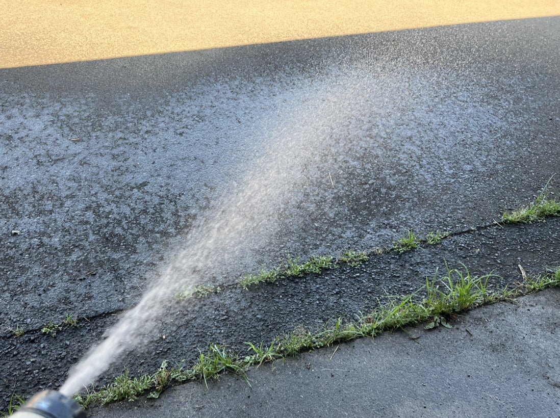 建物の外に打ち水して
