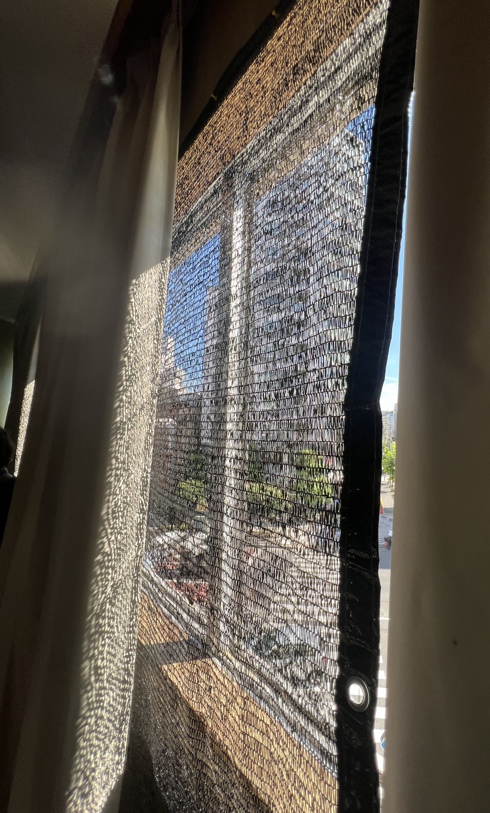 窓に遮光シートを下げて、そこに冷水をスプレーして
