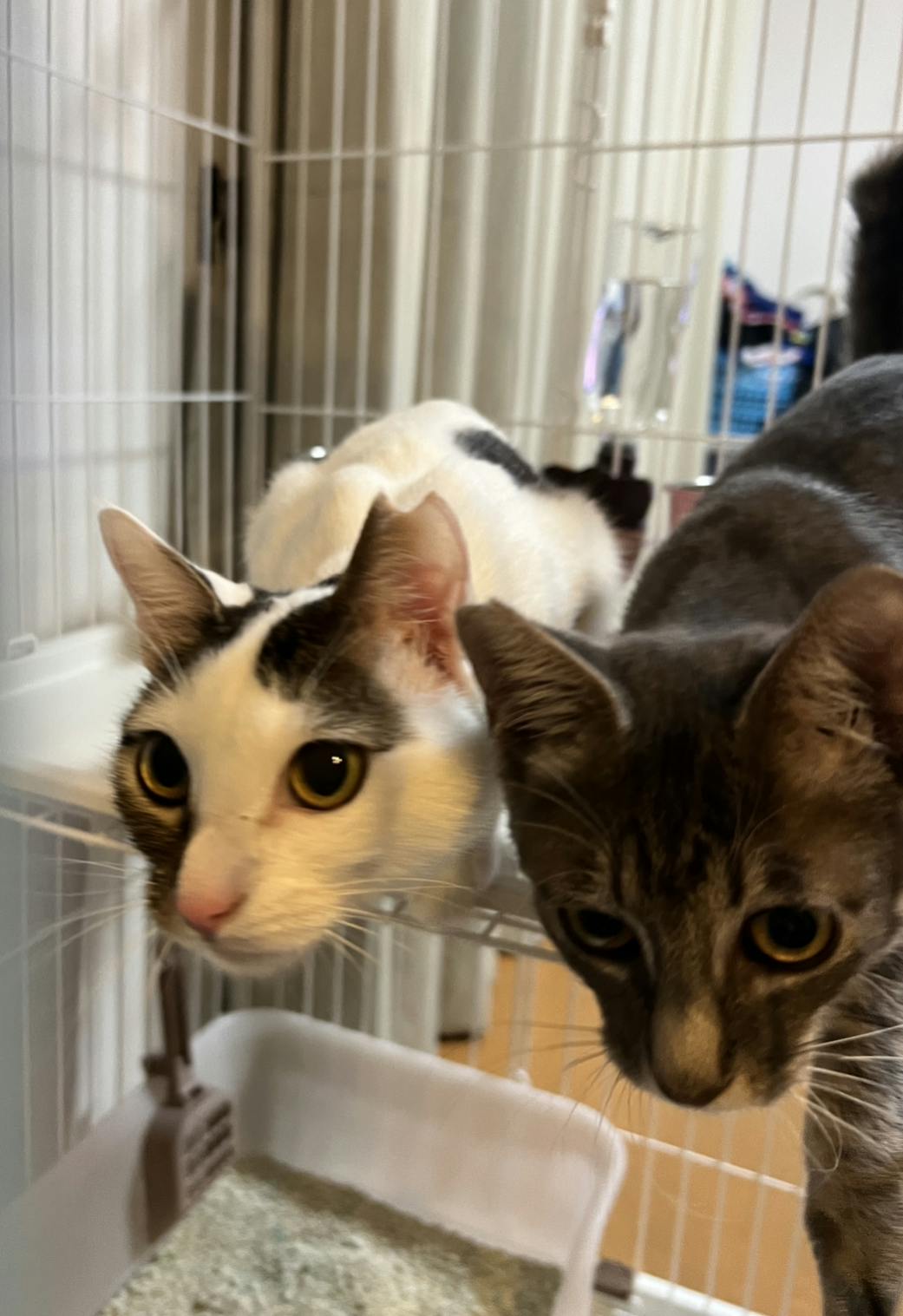 新しいケージに入ってふたりは大興奮。