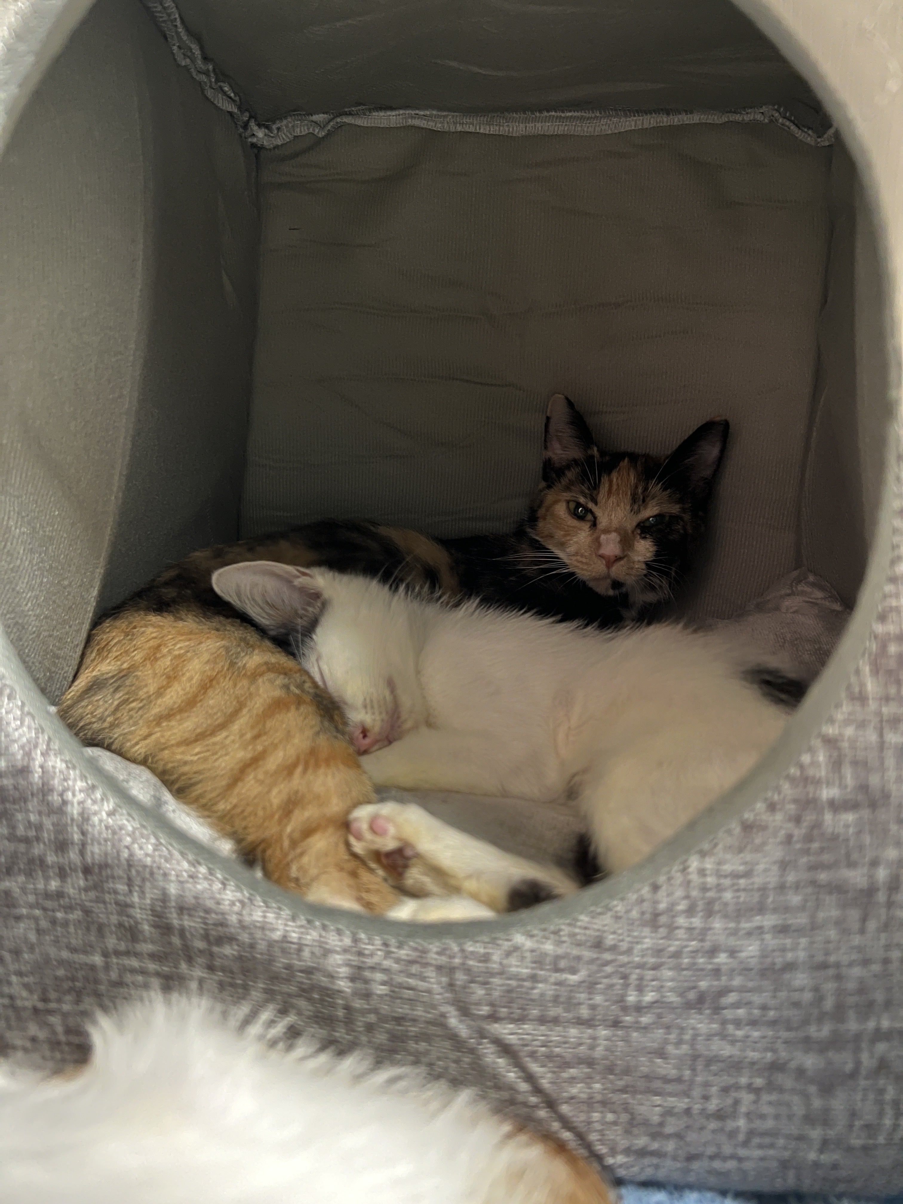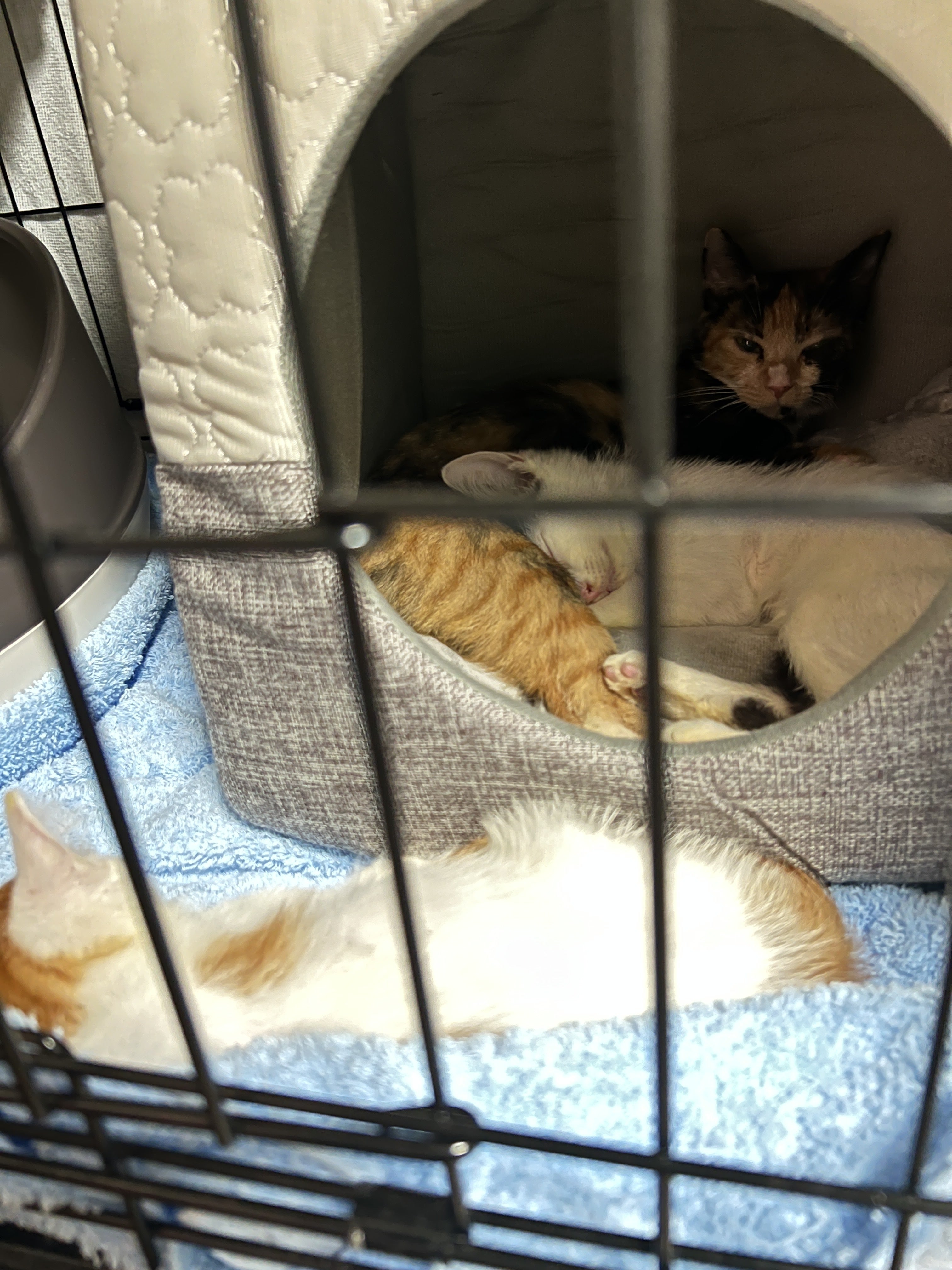 野良さん親子で保護したテラさん(母1歳くらい)とテーくん、ラーくん(2ヶ月くらい)3にゃん家族。