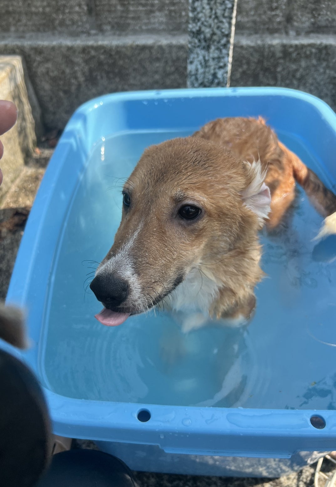 自宅にてプール(洗い桶ですが。。。)しました。