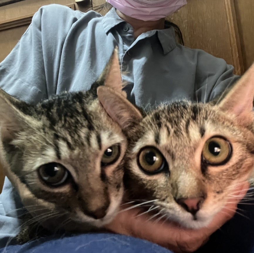 譲渡会では、まだ怖がりで固まってしまう たぽくん、ぽんくん兄弟。