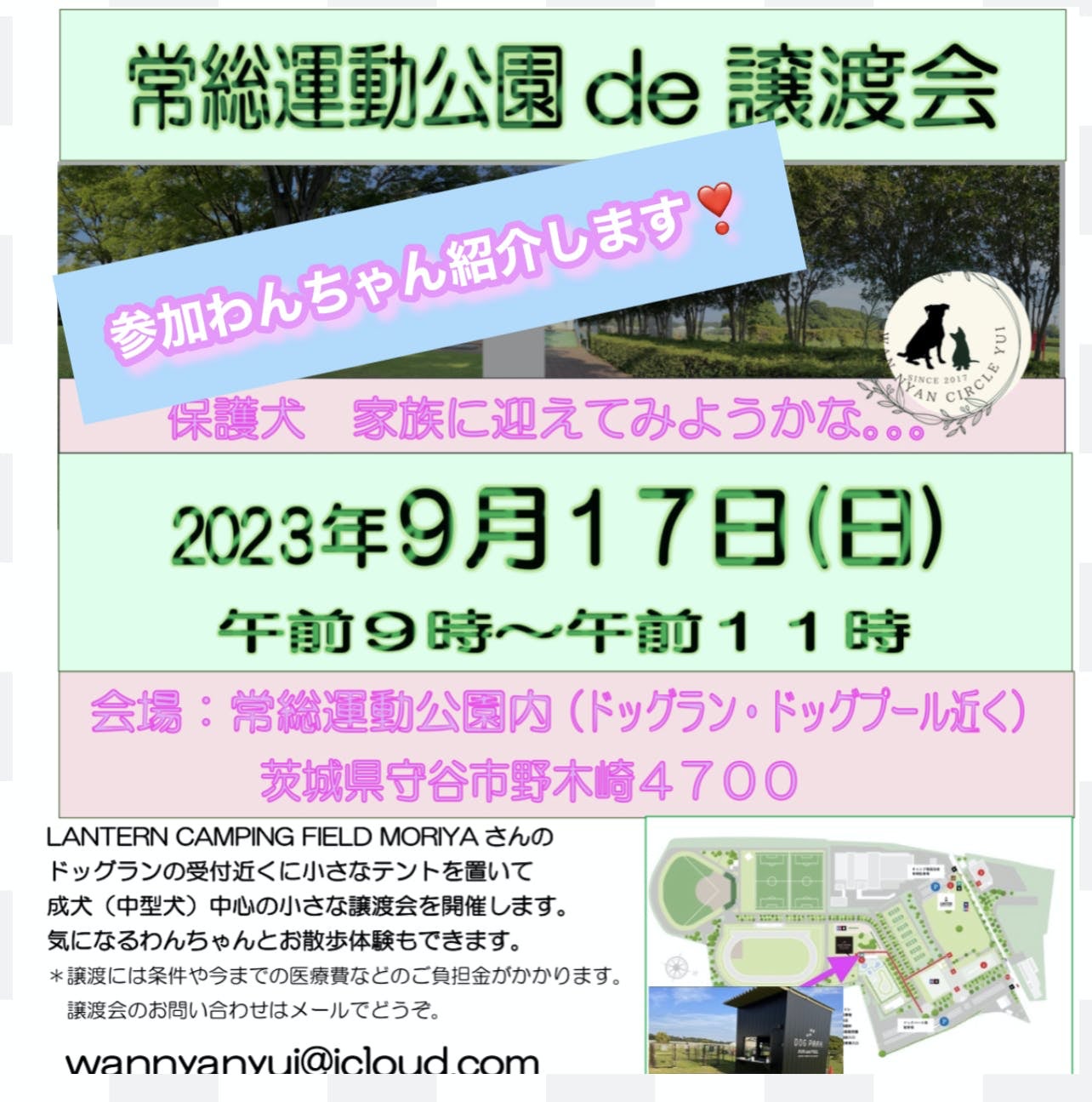 日曜日の常総運動公園de譲渡会。