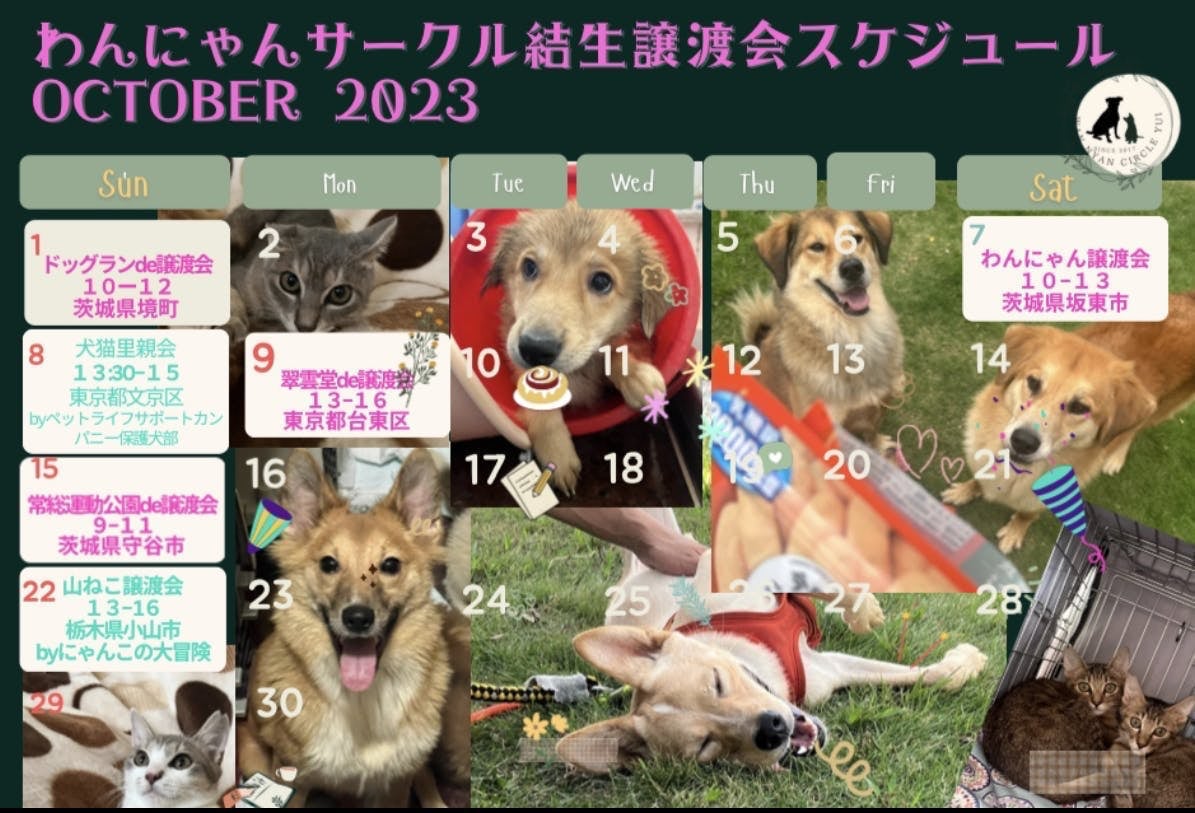 ピンクの文字はわんにゃんサークル結生主催の譲渡会です。