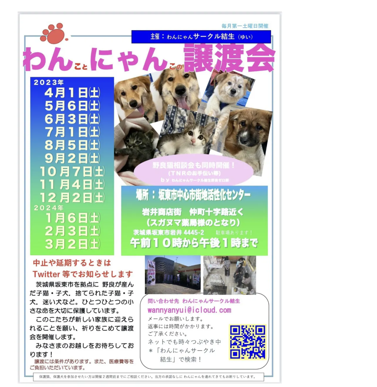 地元の茨城県坂東市で譲渡会を開催します。