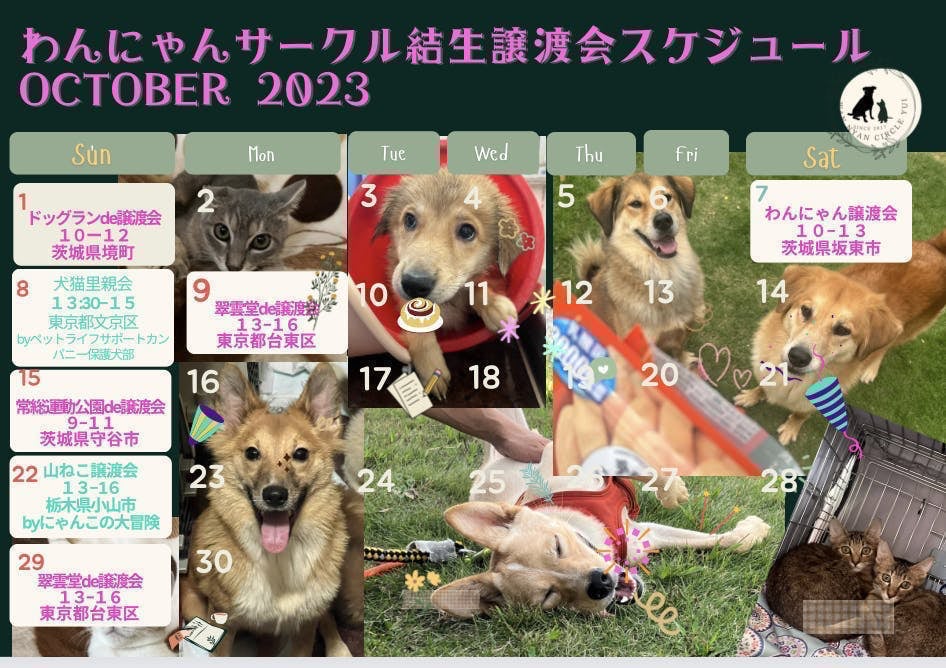 ピンクの文字はわんにゃんサークル結生主催の譲渡会です。