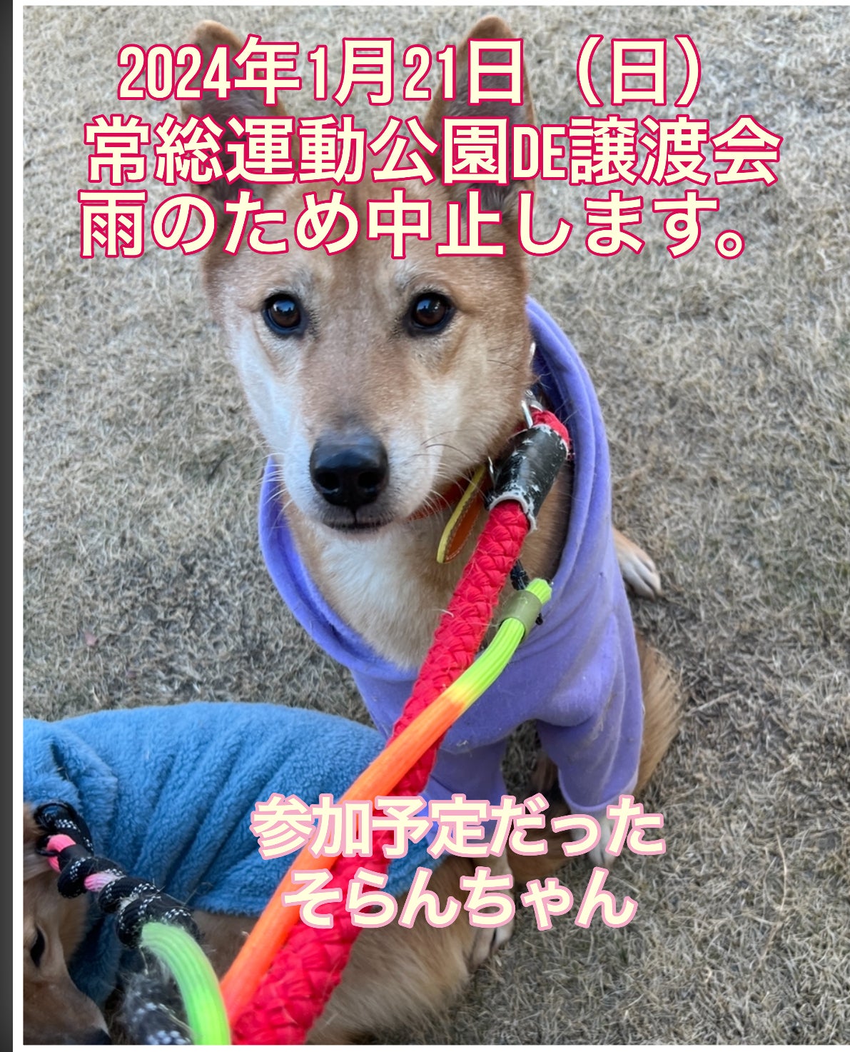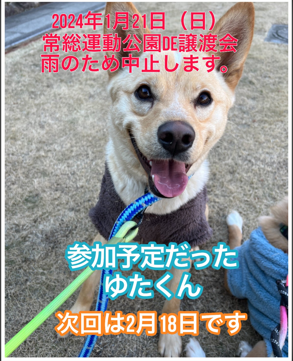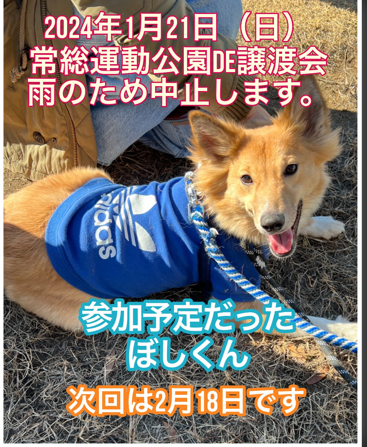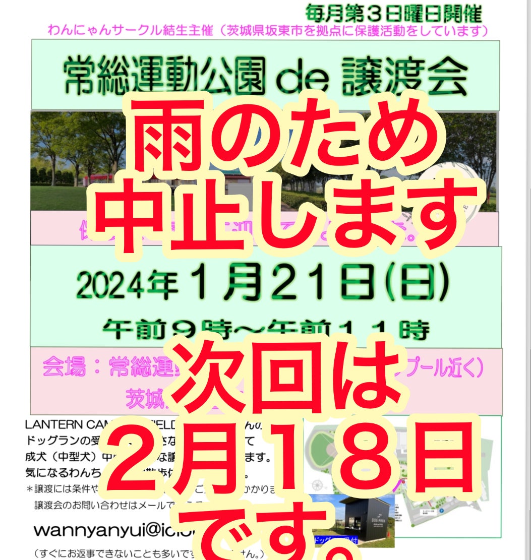 ☆本日の常総運動公園de譲渡会は中止することにしました。☆