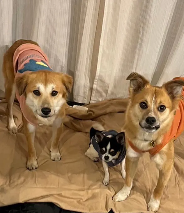 3わん一緒にお昼寝したり、お散歩したり