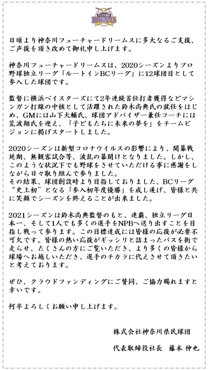 神奈川フューチャードリーム スは、2020シーズンからプロ野球独立リーグ「ルートインBCリーグ」に参入した、神奈川県を本拠地としたプロ野球球団です。