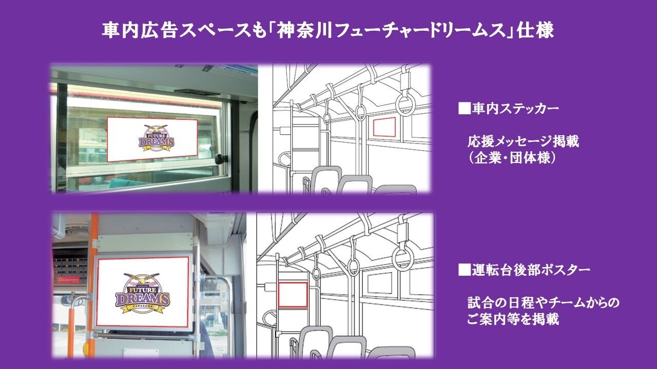路線バス1台をジャックした「神奈川フューチャードリームス」特別仕様への応援メッセージ掲載。 通常、個人でバスにメッセージを掲載することはできませんが、この企画なら車外側面に写真付き メッセージで掲載することが可能です。チームと一緒に同じ景色を見てみませんか?