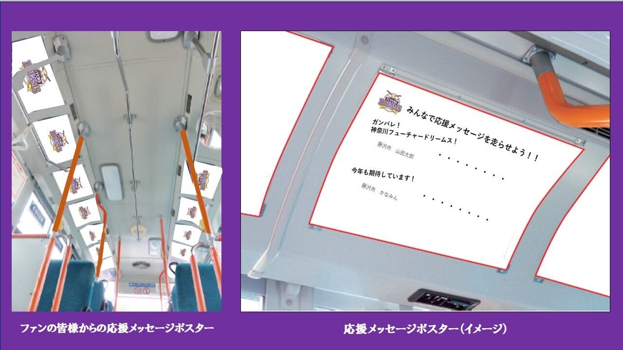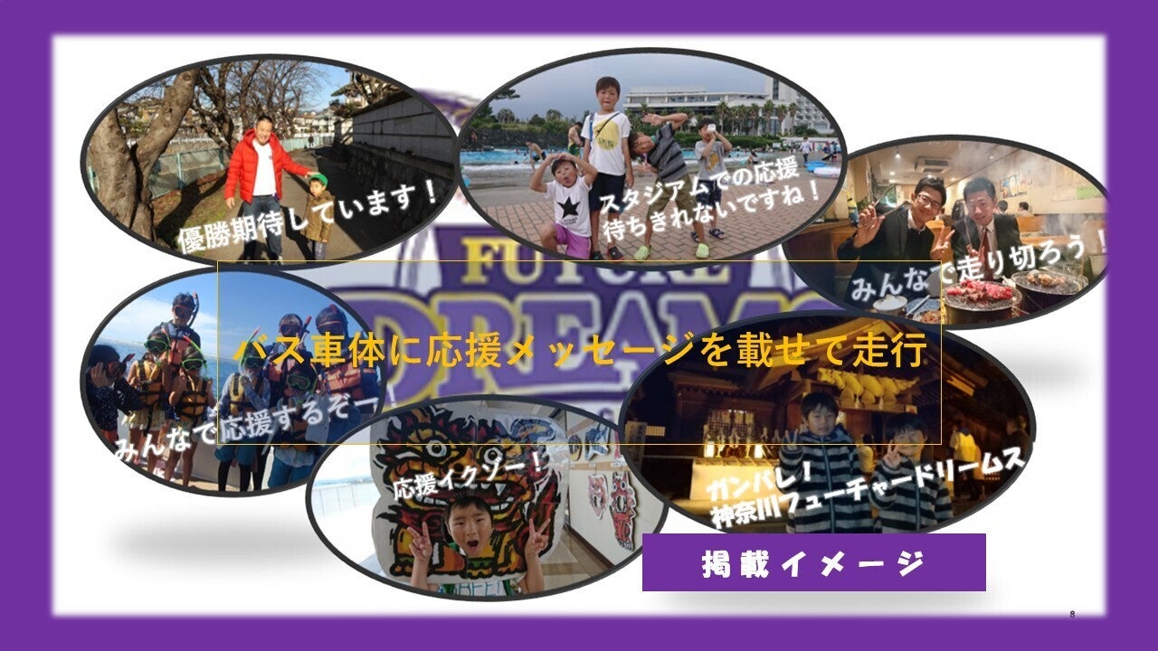 未来を担う子どもたちや地元地域の方々の夢と希望を乗せ「ファンと一緒に走り出す」想いで、応援ラッピングバスを創り出し、スポーツの力でどれだけ神奈川県を元気にできるか挑戦したいと思います。