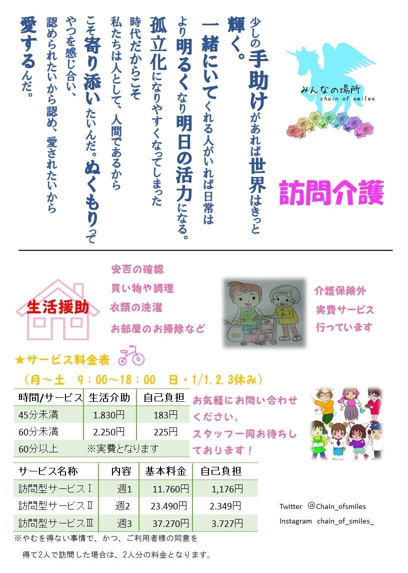 ご支援ありがとうございます!暖かいメッセージも頂きとても嬉しく、感謝の気持ちでいっぱいです。来月5月には訪問事業がスタートいたします。今はメンバーで市川市、浦安などのケアマネージャーさまへあいさつ回りをしています。その中でも、たくさんのアドバイスや指摘を受け日々学びながら活動しています。私たちの成長していく姿を引き続き見守っていただけたら嬉しいです。そしてプロジェクト成功の為、まずは、私たちのプロジェクトをたくさんの方に知ってもらいたく広めてくださると幸いです。『みんなの場所』をどうぞよろしくお願いいたします!
