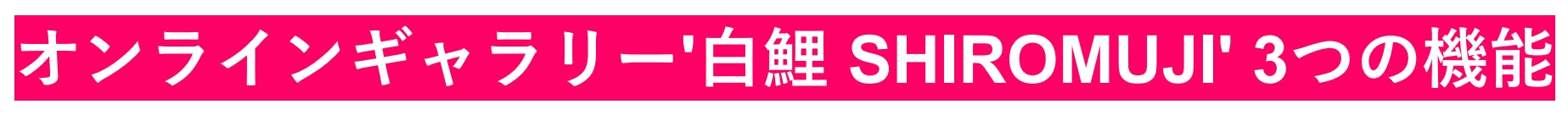 このプロジェクトはあえてこのコロナの時代に、自粛と縮小ではなく、拡大することで事業の成立と継続を目指す発想から生まれました。オンラインギャラリー'白鯉 SHIROMUJI'は、販路を日本全国、世界に開拓し、作品発表の場の創造、アーティストの活動の認知、アート作品の販売を目指します。