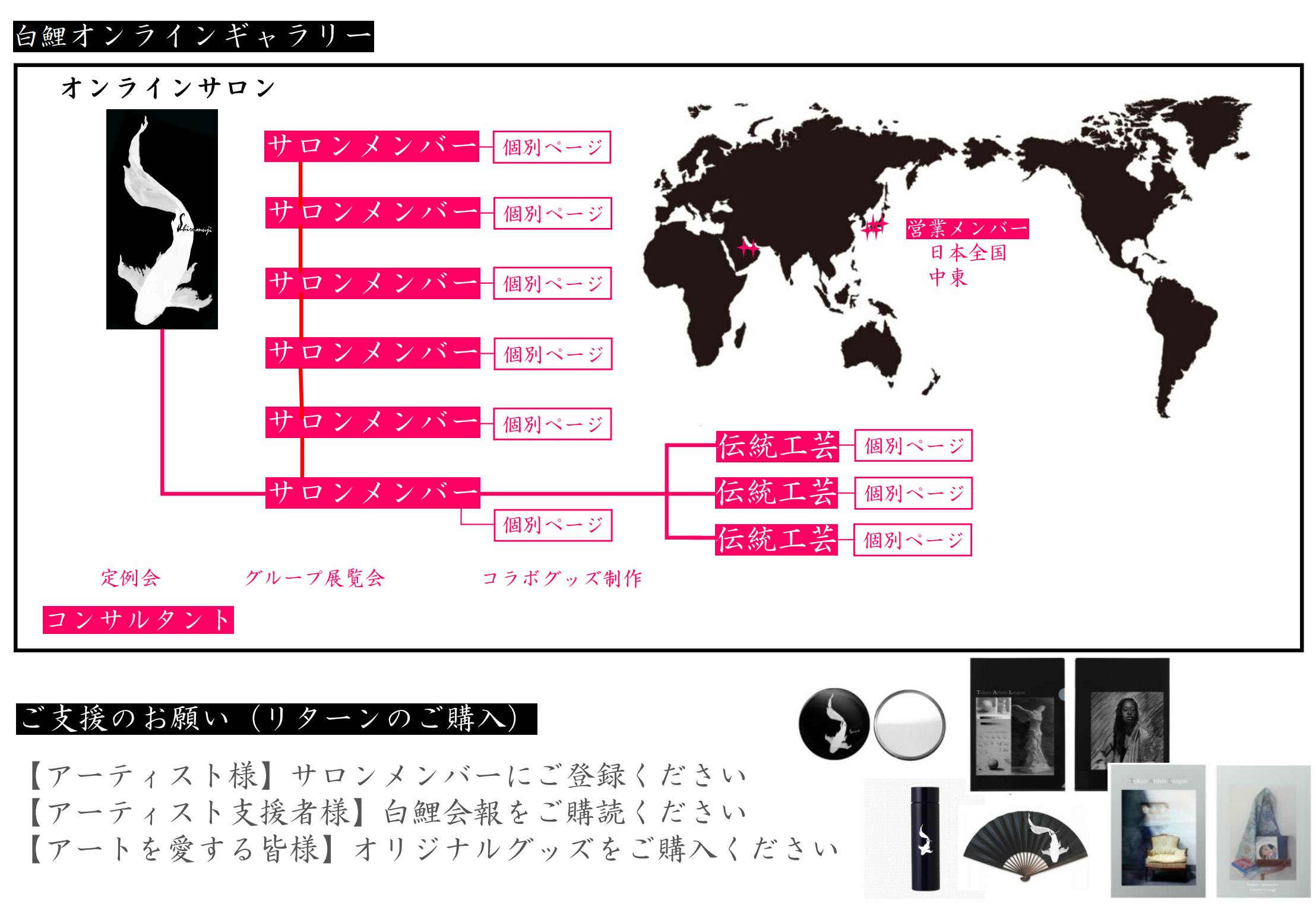 オンラインギャラリー'白鯉 SHIROMUJI' にご登録いただいたアーティストは、白鯉オンラインサロンのメンバーとなります。