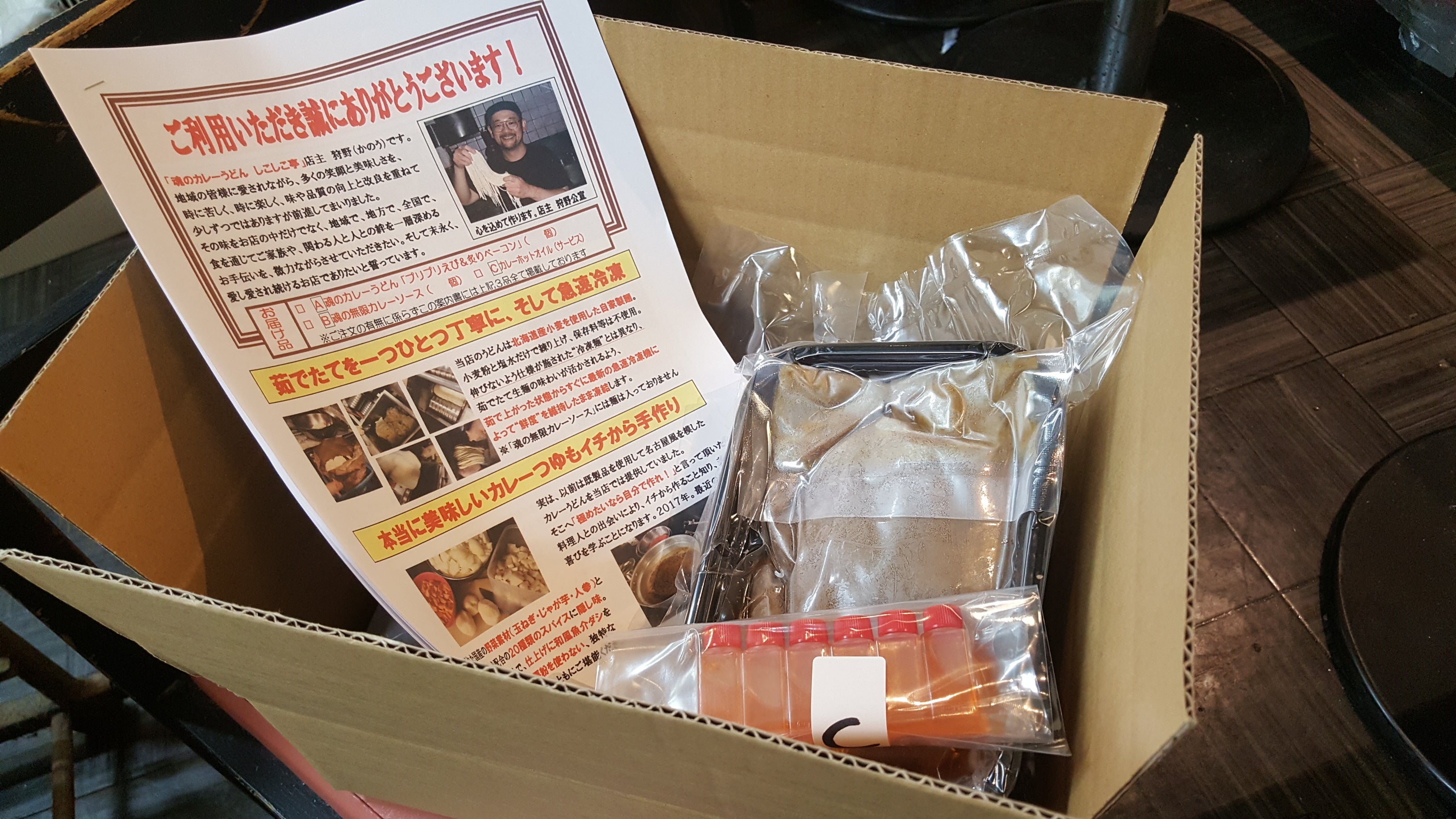 そして、いよいよ当店自慢の「魂のカレーうどん」および「魂の無限カレーソース」を店内から外へ向けて羽ばたく時がやってきました!