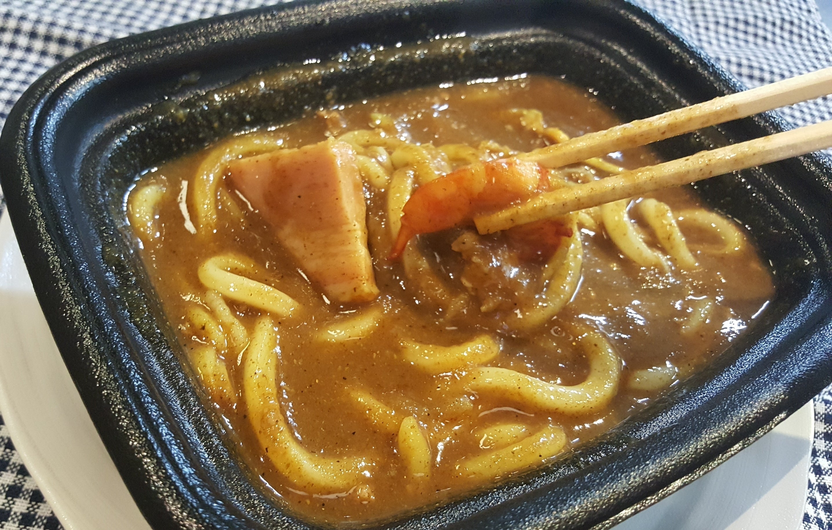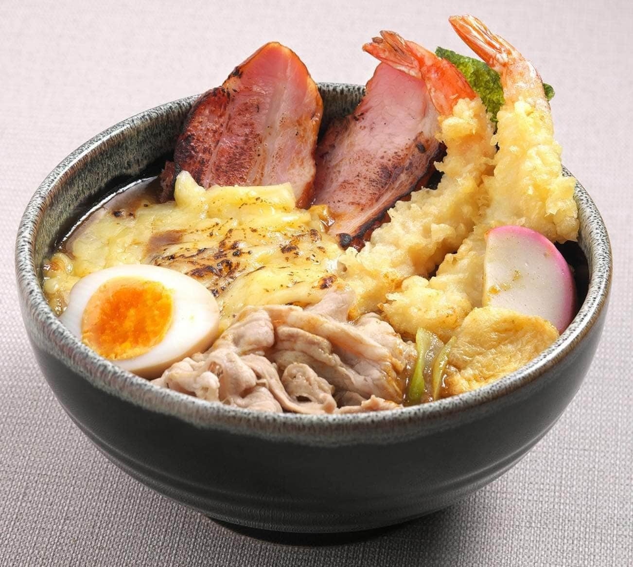 【(A)“魂のカレーうどん「プリプリえび&炙りベーコン」”】