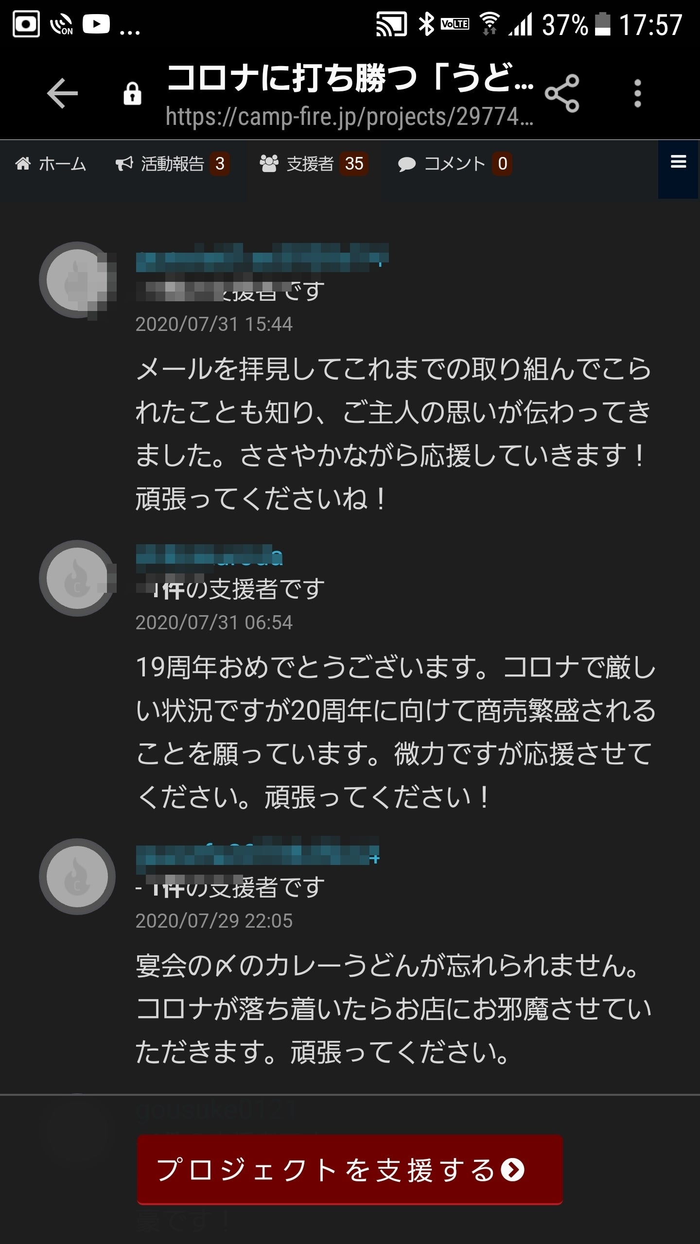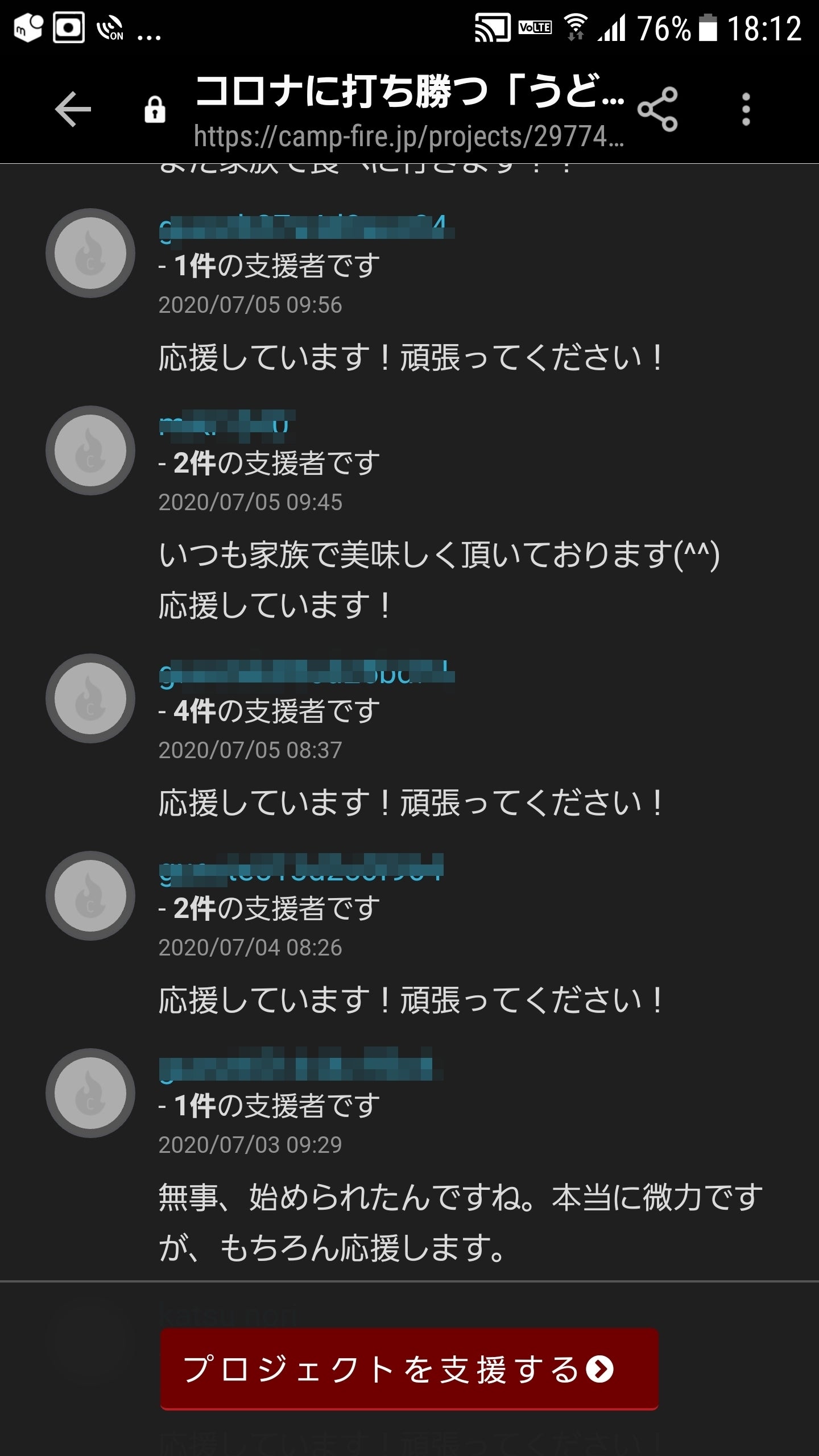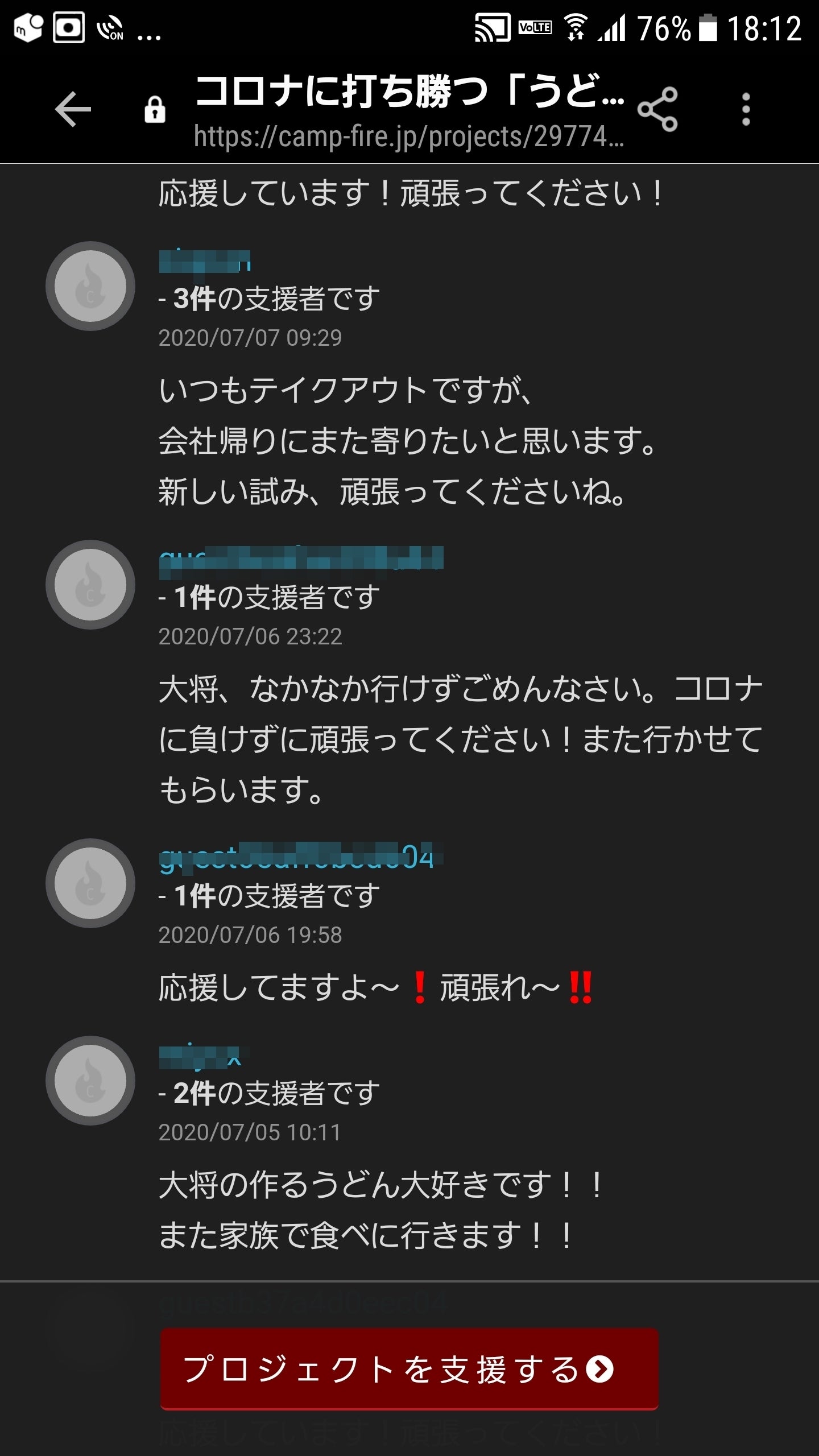 前回のプロジェクトではたくさんの応援メッセージをいただきました!