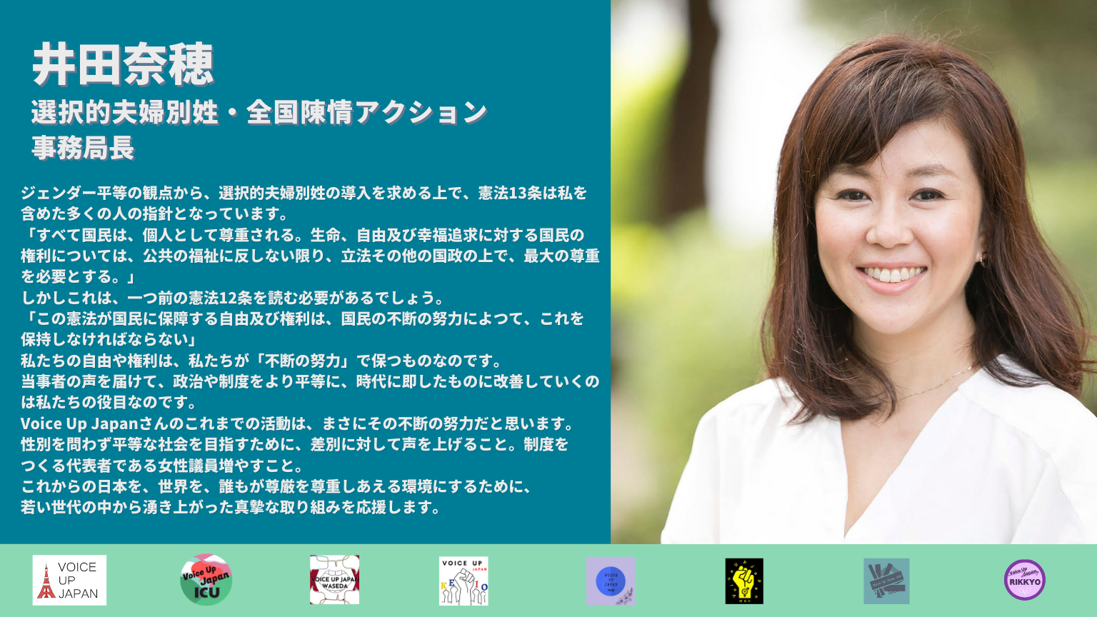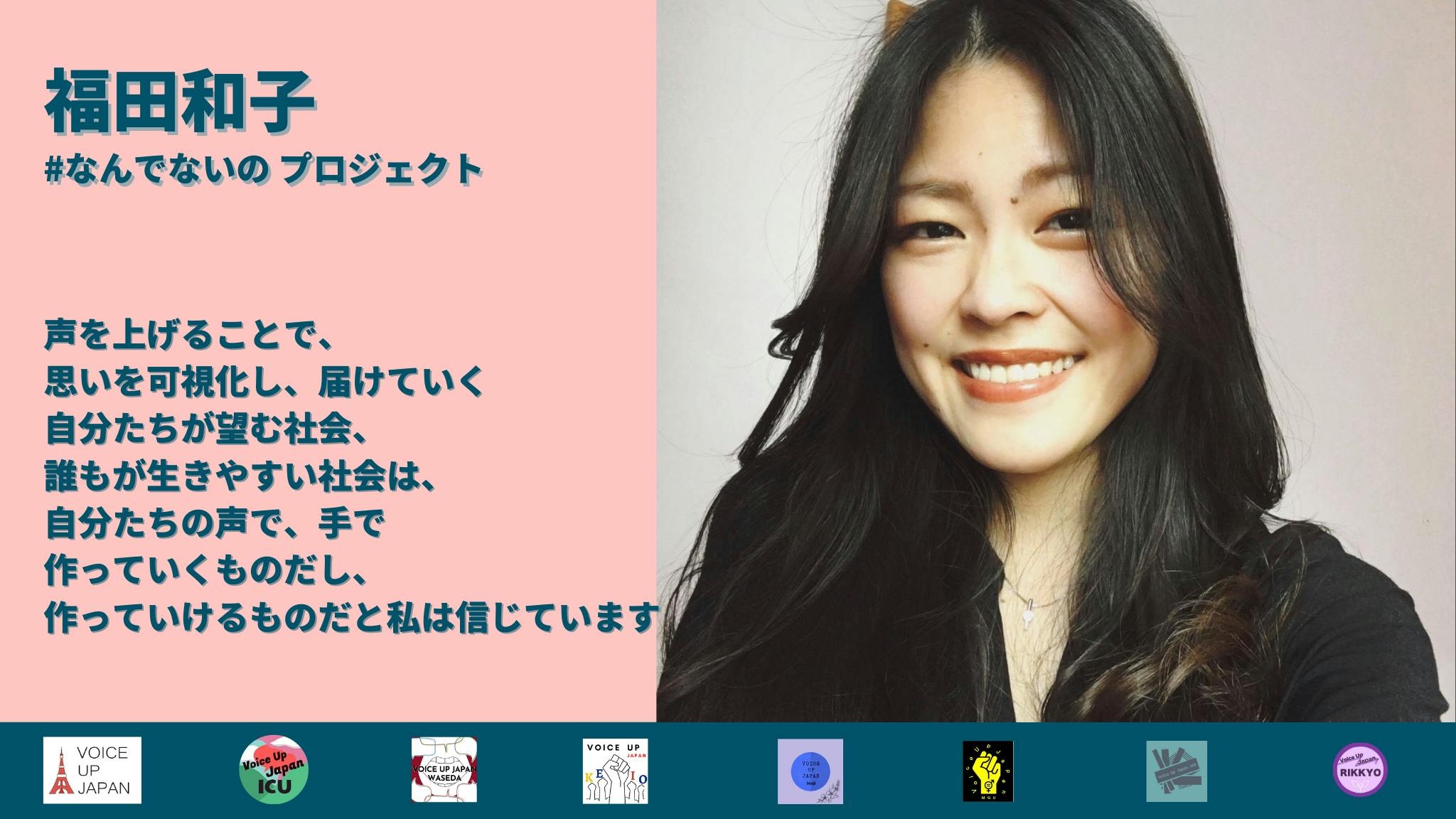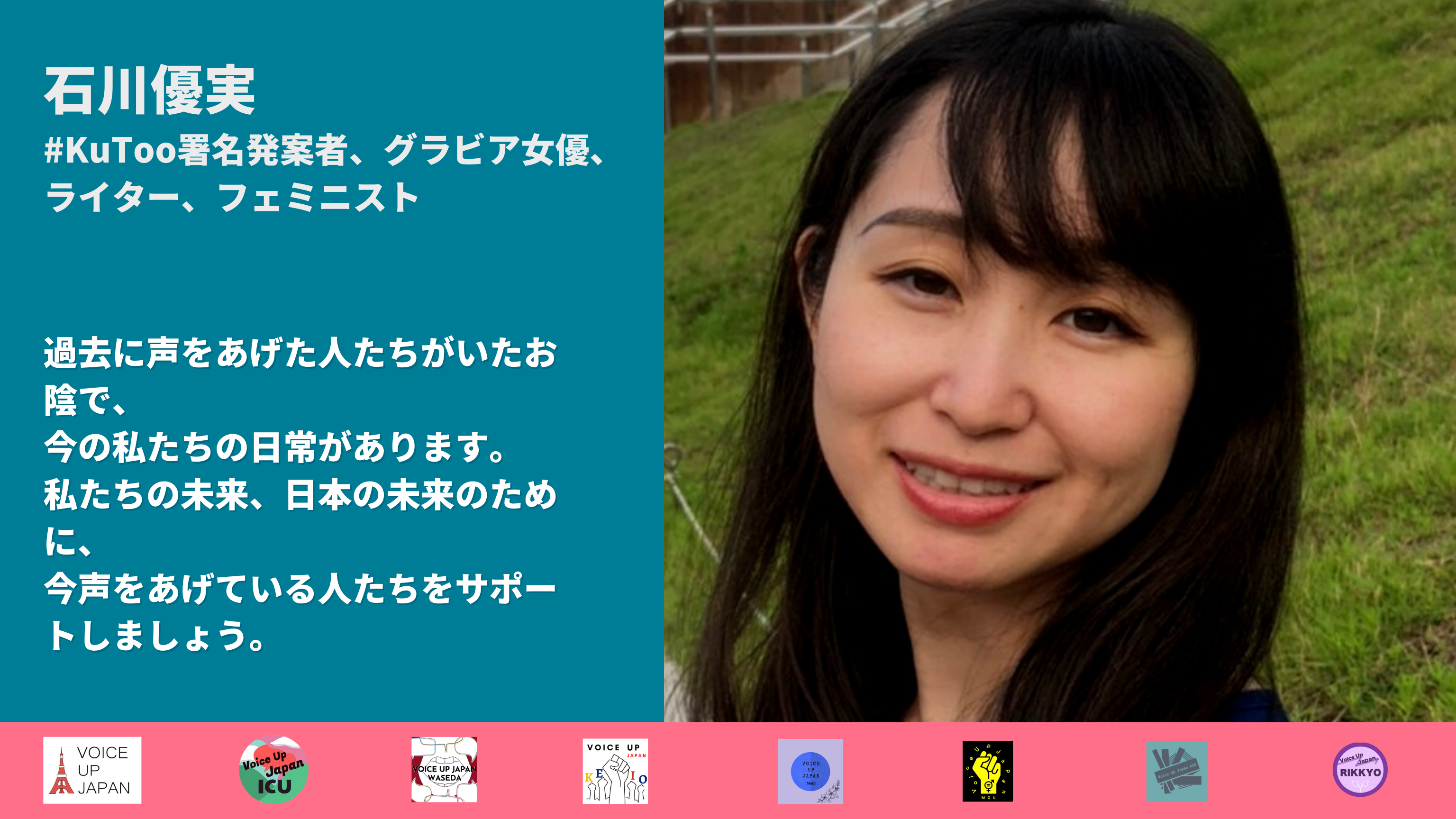 Voice Up Japan is an organization founded by Kazuna Yamamoto in 2019 after starting a petition against a tabloid magazine that created a ranking of universities with female students that are easy to approach for sex.