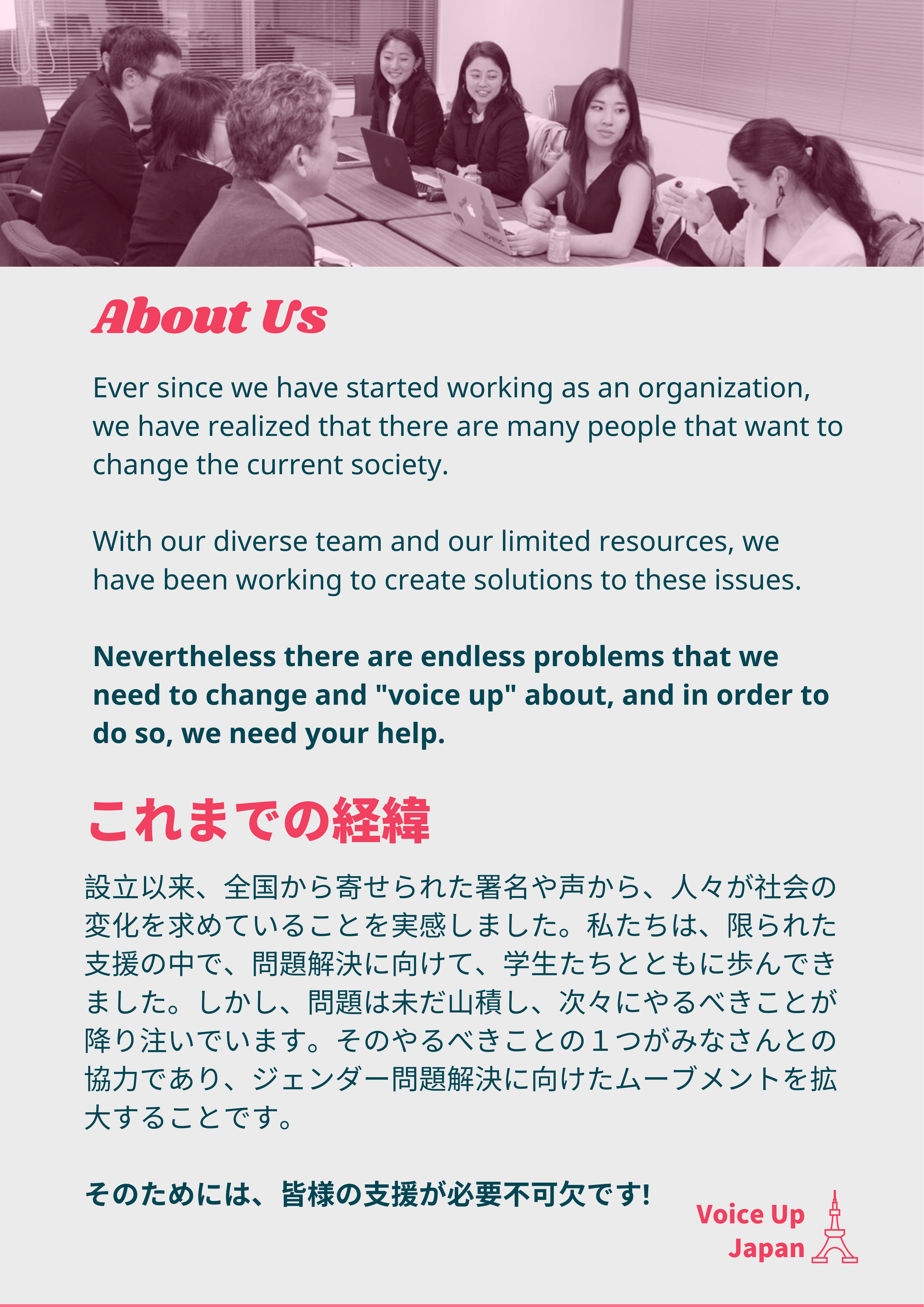 ※法人用書類を希望の方は、voiceupjapan@gmail.comにご連絡いただければ別途送りします。