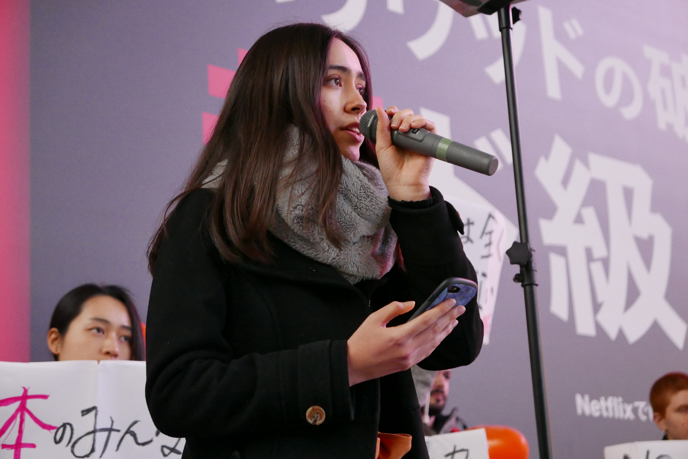 また、就職活動中の学生に対するセクハラを止める活動に参加し、2019年の11月に記者会見を開き、国内外からの 注目を集めています。会見では、日本の就活生に対する様々なセクハラについて発表しました。記者会見はその後Twitterで大きく広まり、被害者たちが今までの経験を話せるきっかとなりました。