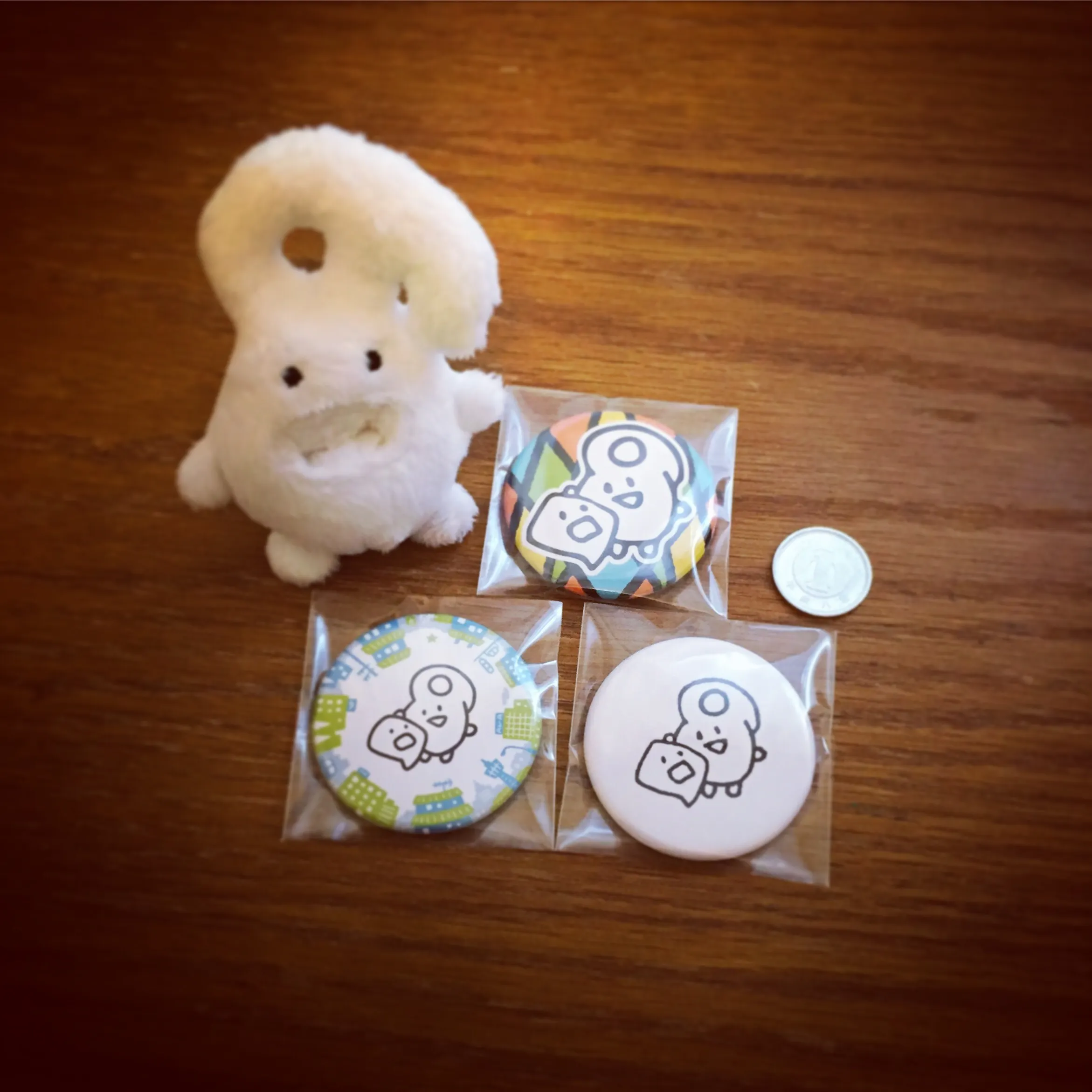 ご希望に応じて、作らせていただいたピンバッチ、缶バッチ、ステッカーをお届けします。