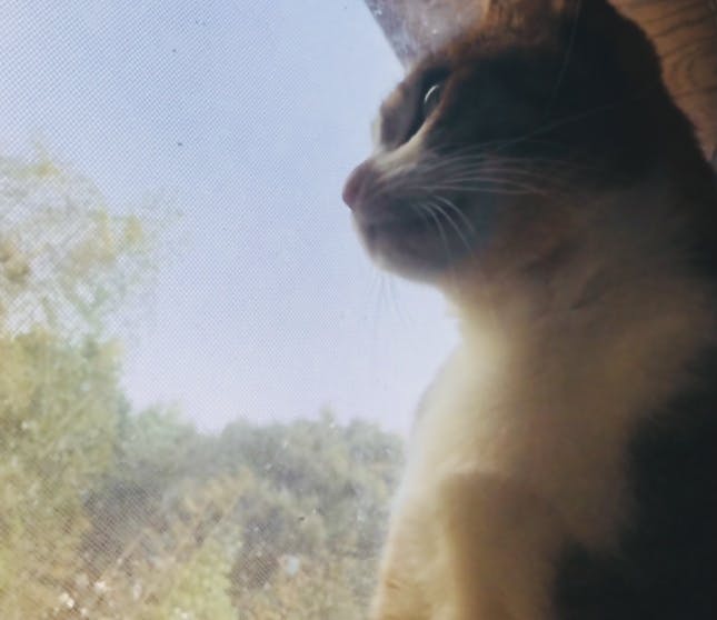外を眺めるレオンくんとしずくちゃん。
