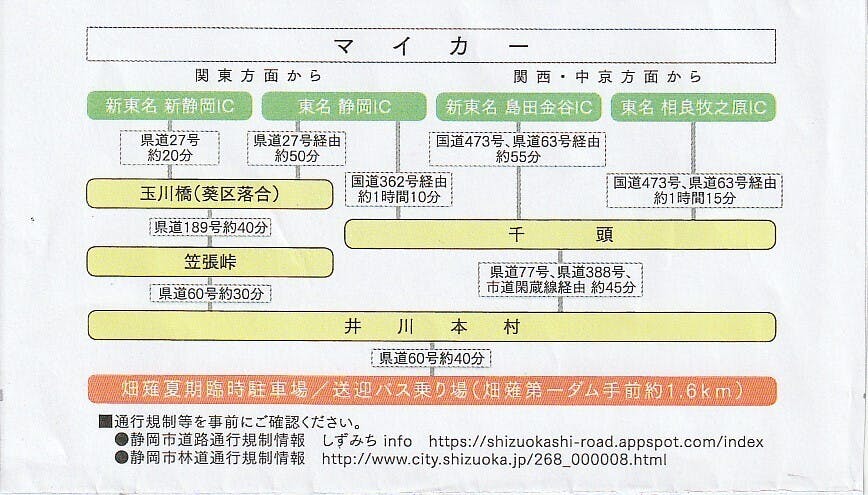図説 1 静岡市役所井川支所発行 『井川湖渡船乗り継ぎ時刻表』 2020/3