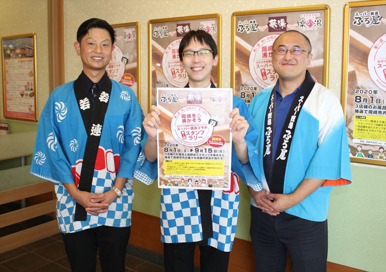 (左から、楽の湯 店長 平山貴英 /葵湯 支配人 福田駿輔/ふろ屋 店長 小池竜也)※写真、岡崎ホームニュース8/14掲載より