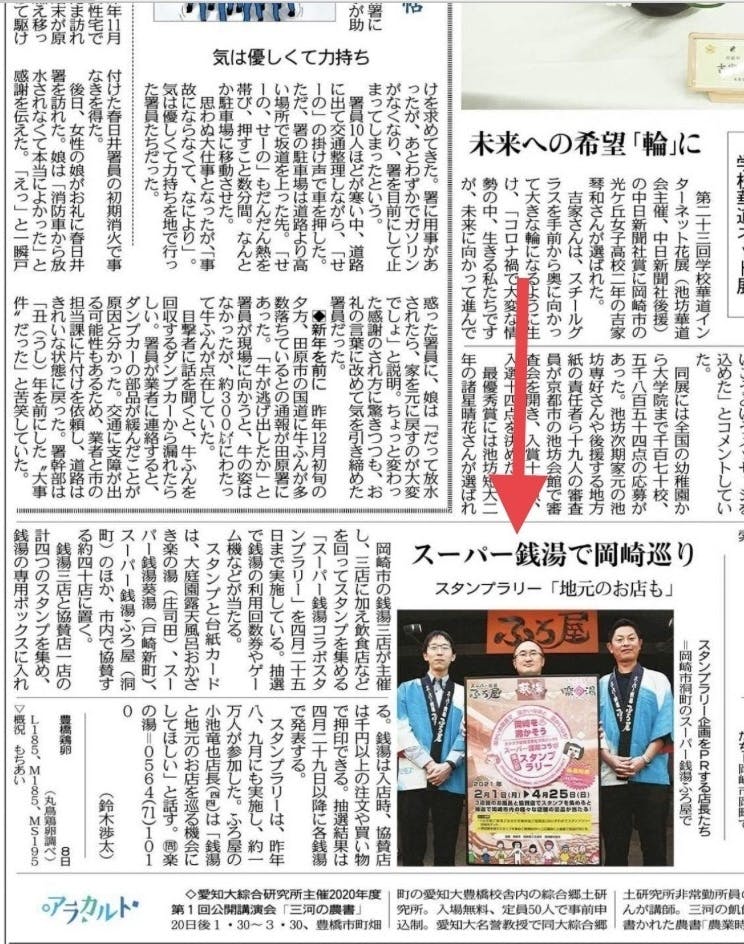 本日の中日新聞にスタンプラリーの記事が掲載されました。これからも沢山の方に知って頂ける様に、PR活動を継続していきます。皆さんのスタンプラリーへのご参加お待ちしております。