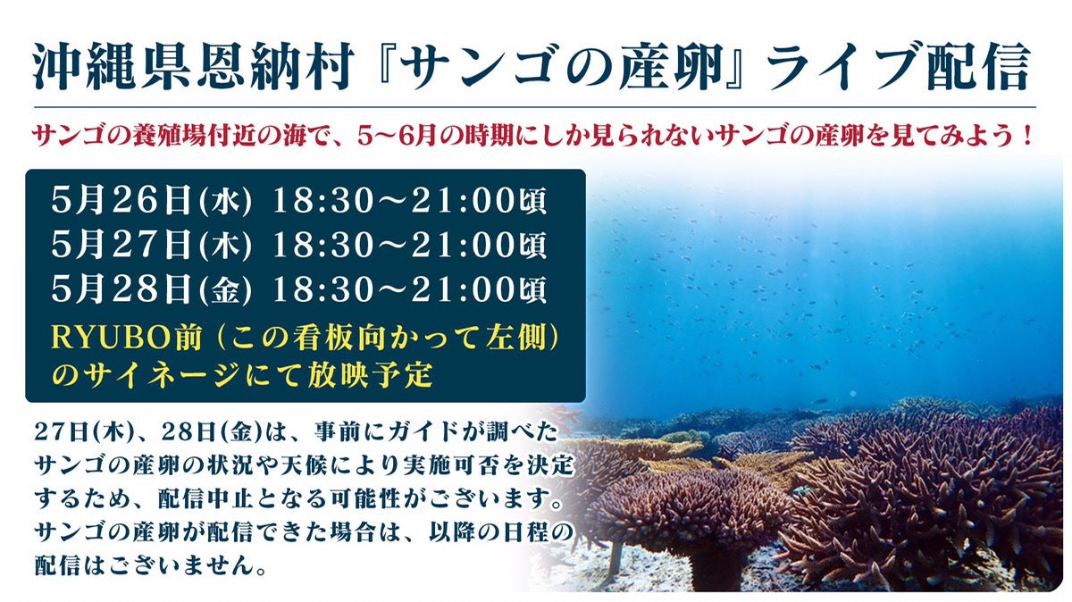 緊急開催となり申し訳ございませんが、本日より、バーチャルOKINAWA内の、バーチャル国際通りで沖縄県恩納村の海より生配信により、サンゴの産卵の様子を配信いたします。