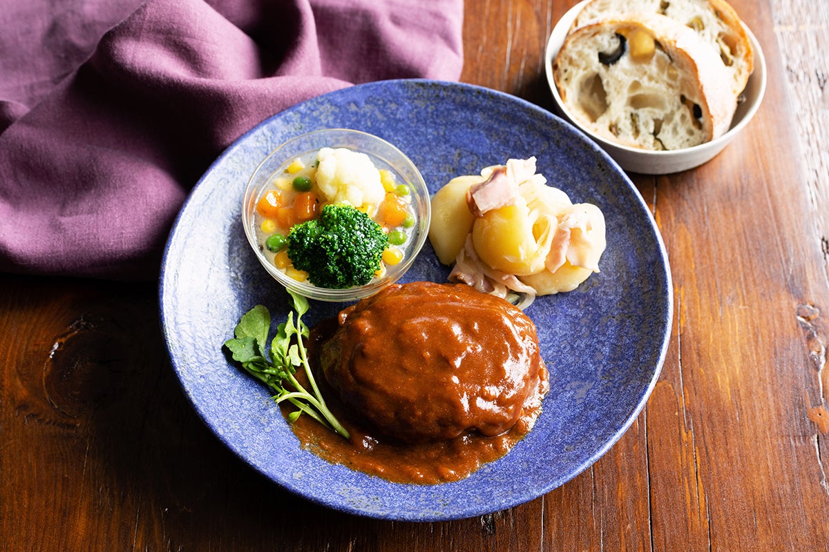 主菜の《ハンバーグデミソース》は、