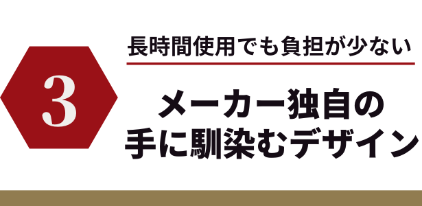メーカー独自の技術が採用された持ち手は、ナイフの重量を利用しバランスが取りやすく手に馴染みやすいデザインとなっています。そのため長時間の使用でも手への負担が少なくなります。