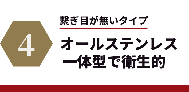 オールステンレス一体型で、刃と柄に隙間が無く滑らかなラインでつながっています。汚れや細菌が入り込む繋ぎ目の隙間は存在しません。