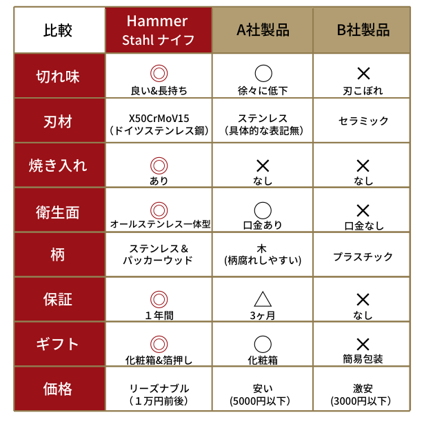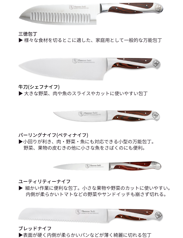 その中でもHammer Stahl(ハマーシュタール)ナイフはリーズナブルな高級包丁に位置付けられます。