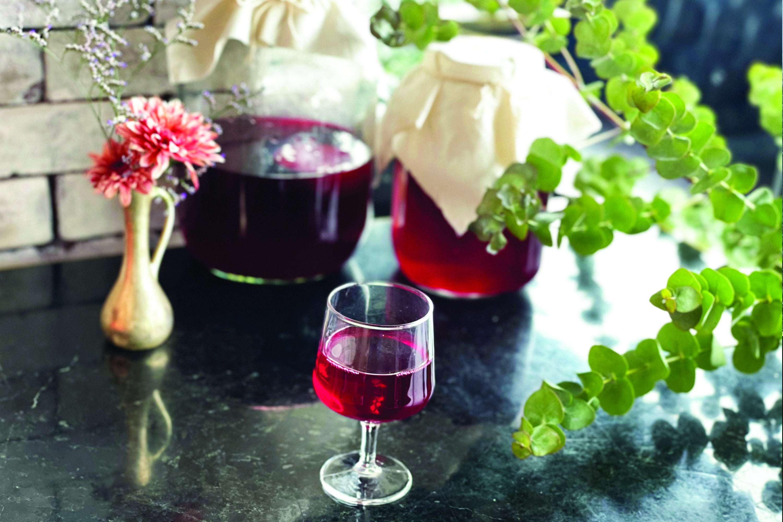 オーガニックハイビスカスで作ったコンブチャは甘酸っぱく食欲を増進してくれます。