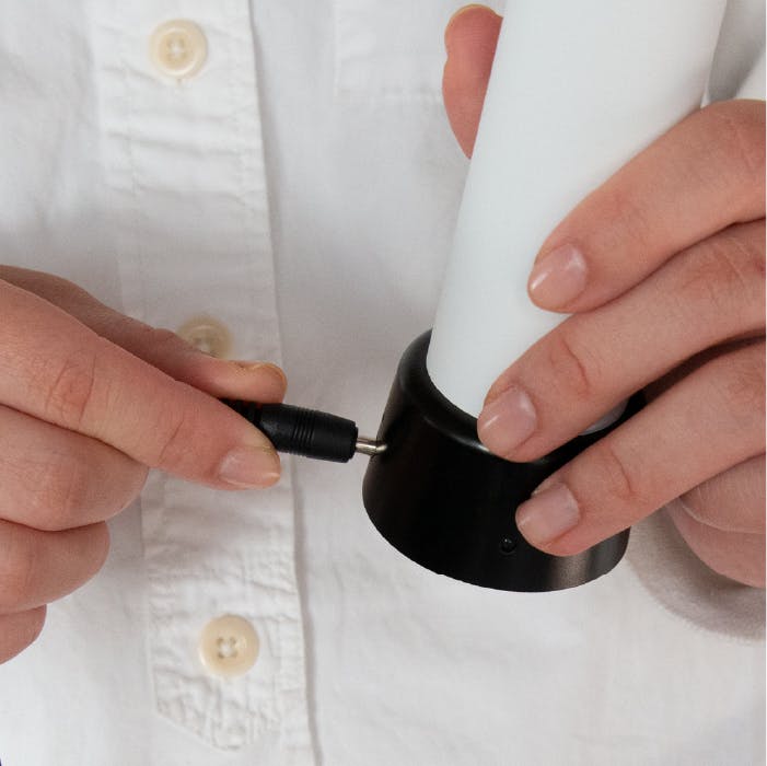 そこで、今回、充電式にすることで点灯時間を延長し、製造段階での試行錯誤により外径を5.2センチにすることに成功。長時間の使用を可能にし、よりロウソクを感じてもらえるフォルムに仕上げることでNEW Chandelleが誕生しました。