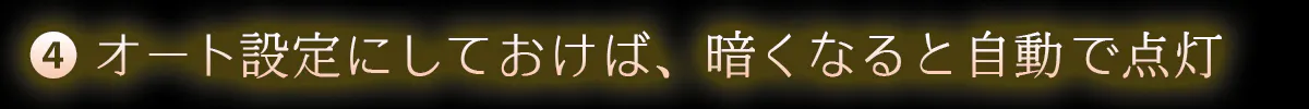 ④オート設定にしておけば、暗くなると自動で点灯